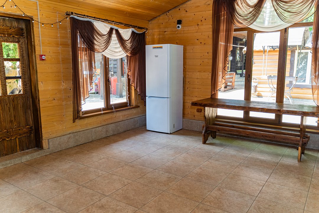 Баня оплачивается отдельно — 2500 ₽/час до 8 человек, минимум от 2 ч; более 8 человек — 4000 ₽/час.