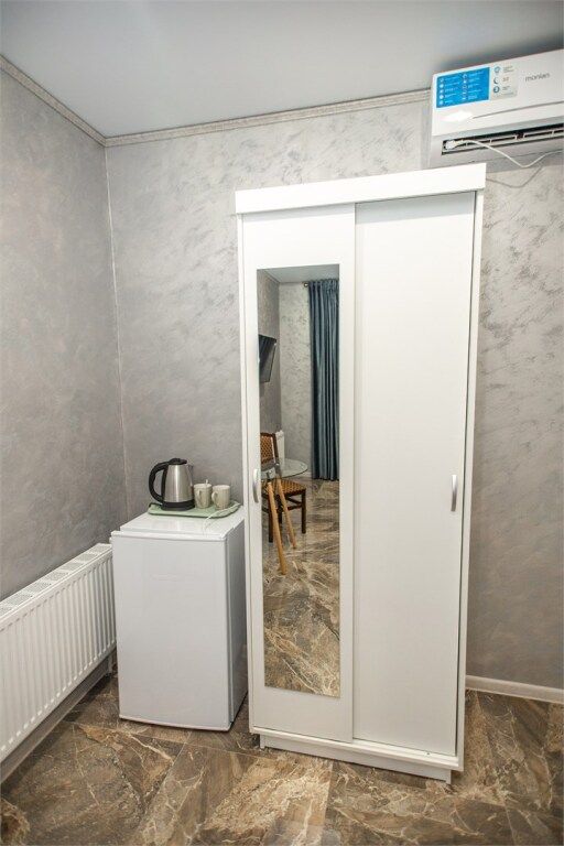 В номере есть всё самое необходимое для комфортного проживания халаты, тапочки, полотенца, средства личной гигиены, фен, холодильник, тв, кондиционер, чайник.