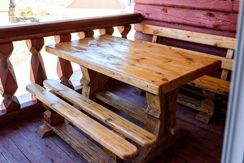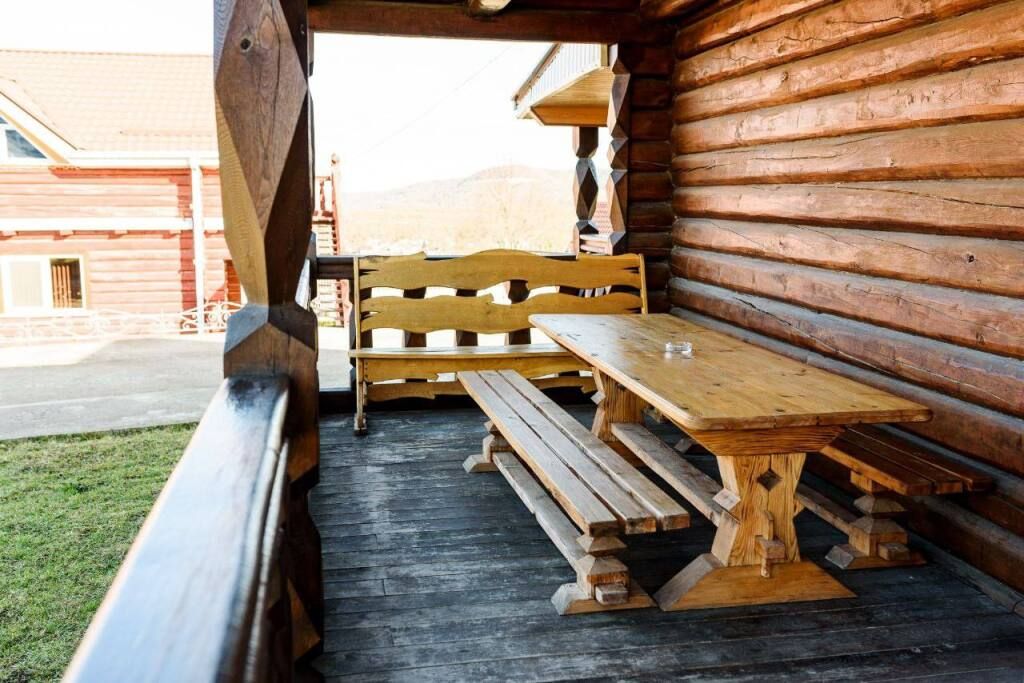 Также в каждом номере свой туалет и душ. Номер имеет выход на свой личный балкон с большим деревянным столом и лавочками. И конечно же прекрасный вид на горы.