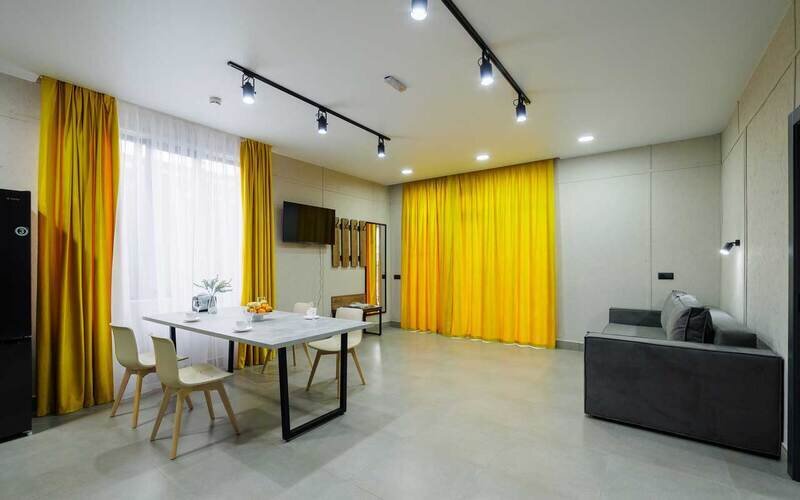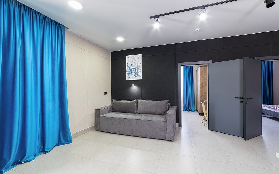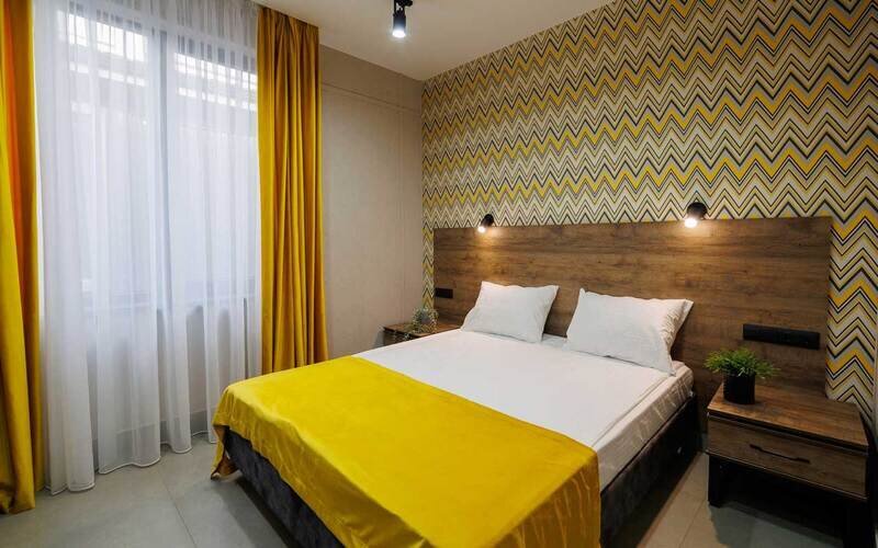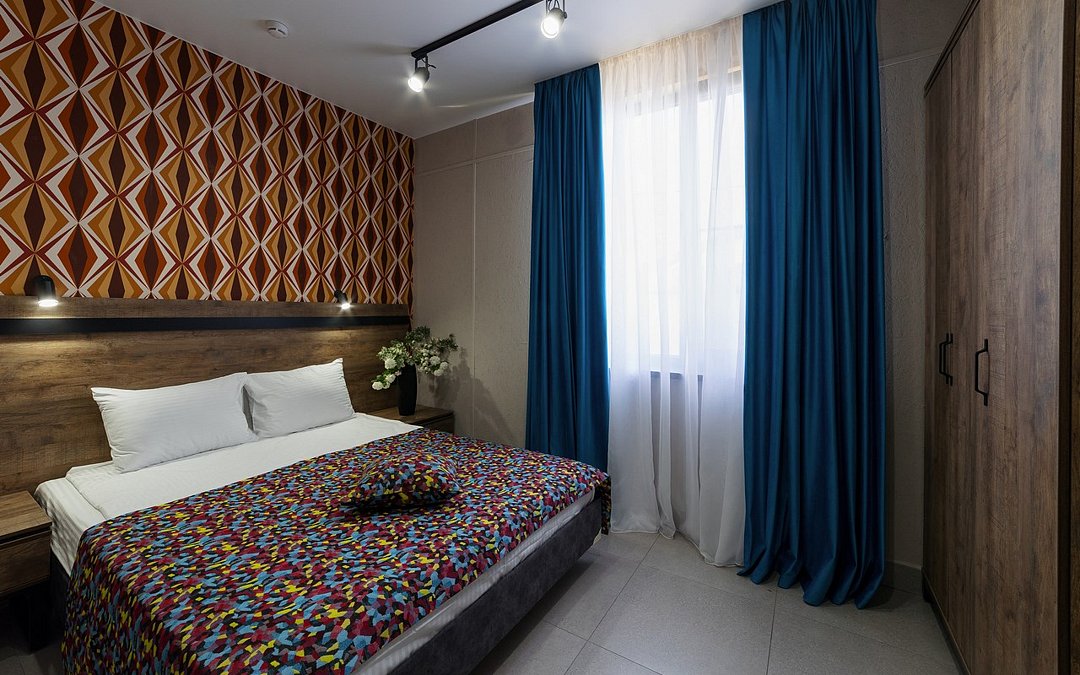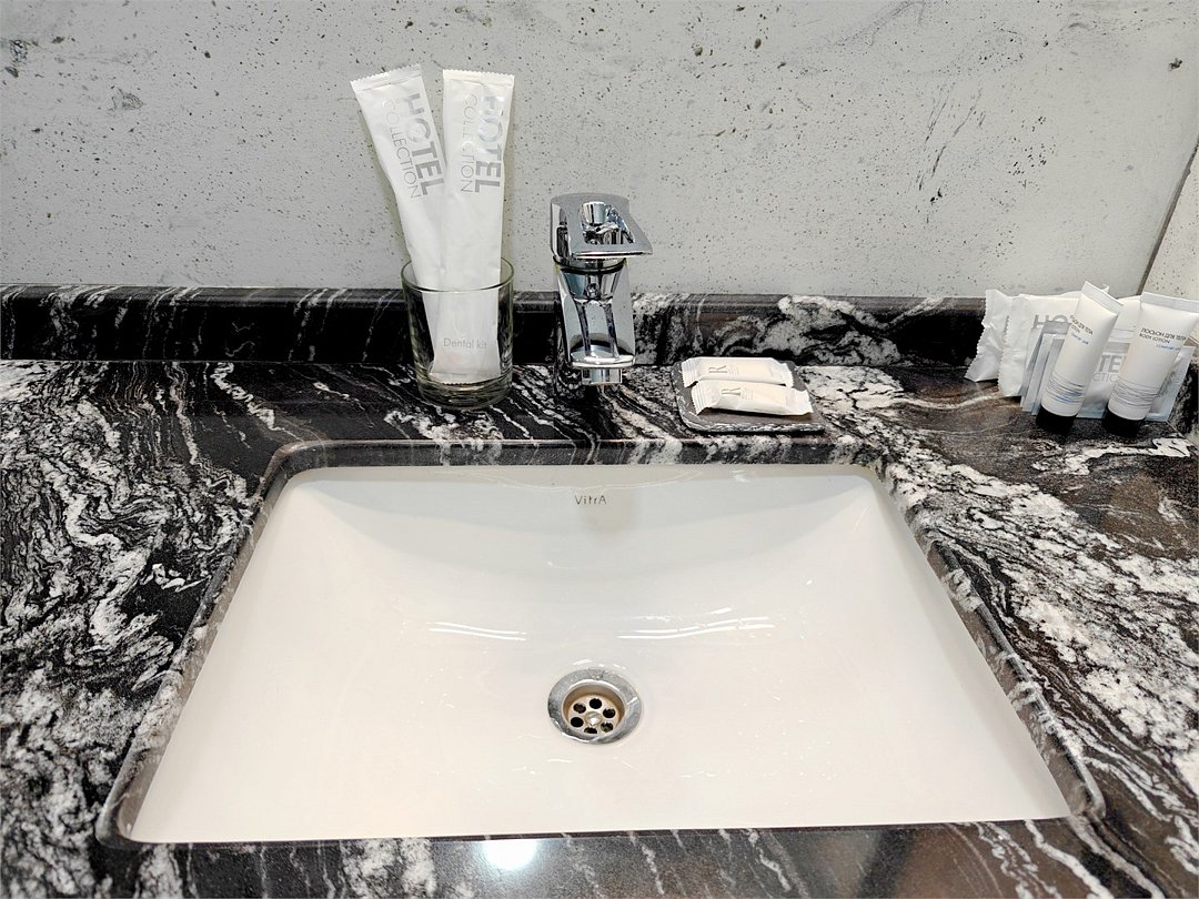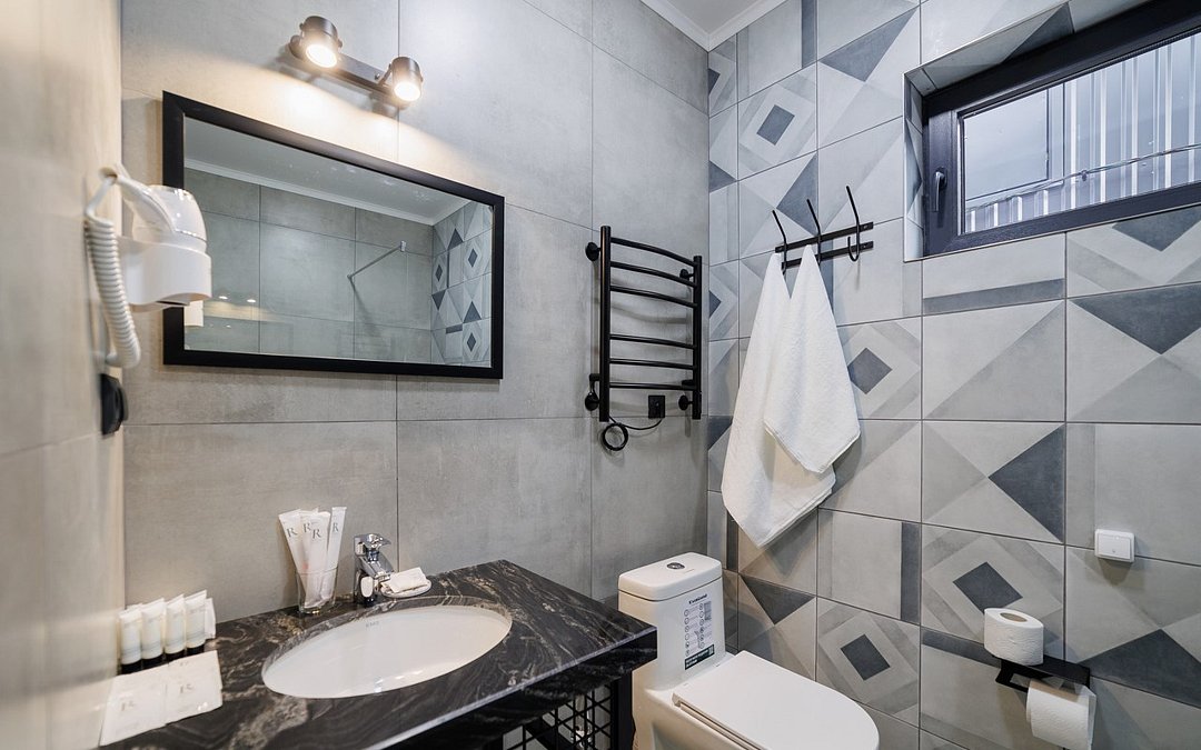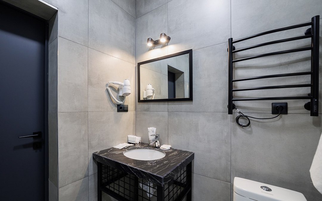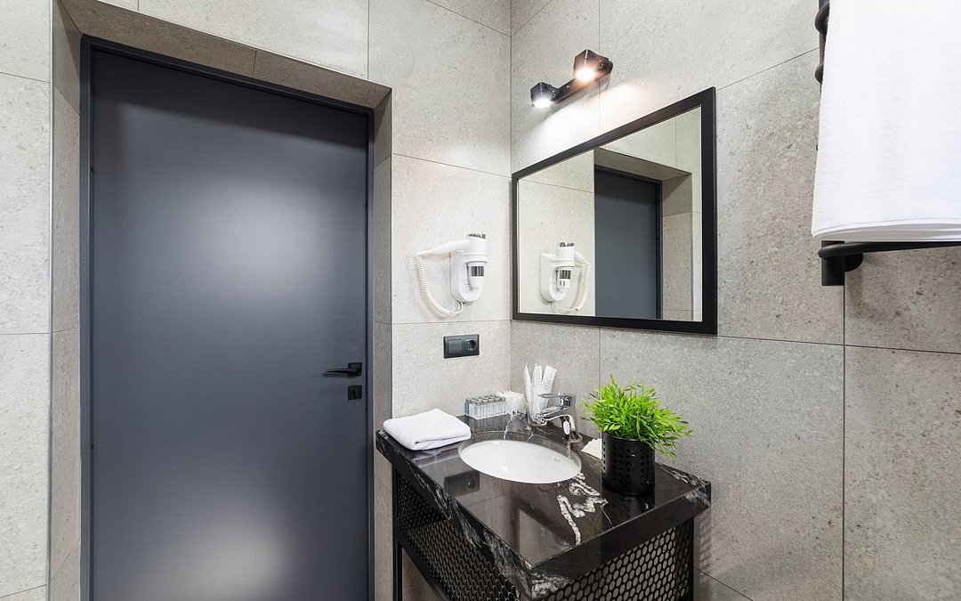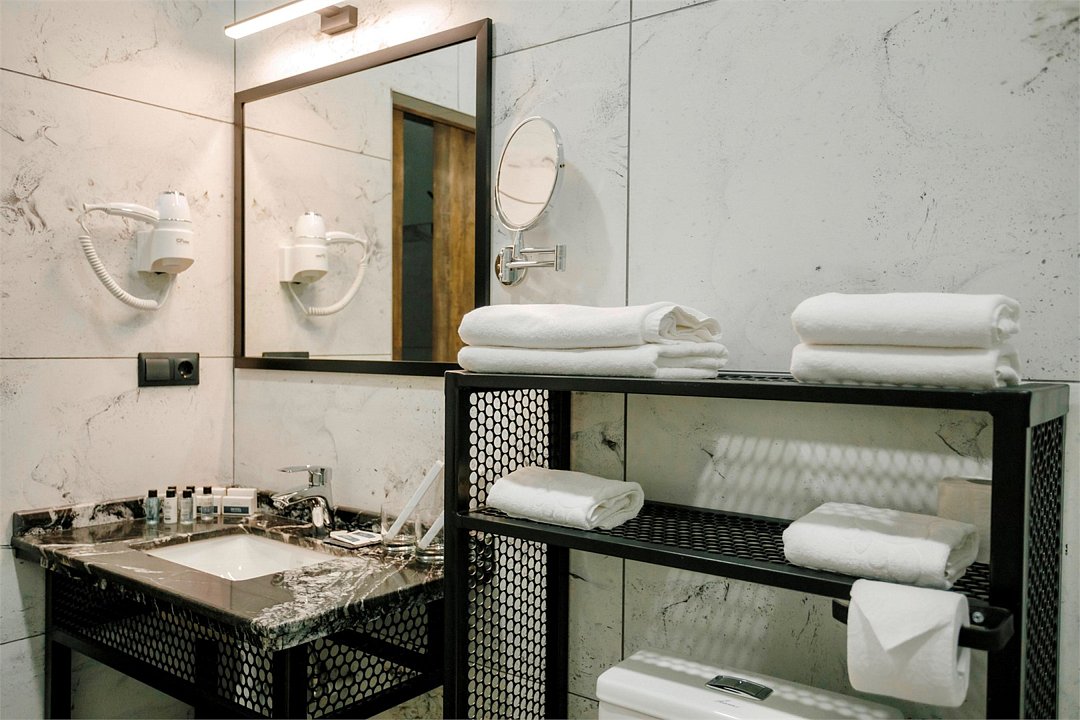 Телевизор с плоским экраном,Wi-Fi, телефон, Сплит-система, фен, прикроватные светильники, холодильник , (утюг и гладильная доска по требованию). Двуспальная кровать, кресло-кровать, багажная тумба, зеркало, шкаф для одежды, письменный стол и стул, вешалки Душ, санузел, раковина, унитаз, зеркало с подсветкой, зубная щетка (в день заезда), зубная паста (в день заезда), шампунь, мыло, гель для душа, лосьон для тела, салфетки, туалетная бумага, халаты, банные полотенца, тапочки, шапочка банная. Информационная карта, меню, обслуживание номеров, сейф, чайник, чайный набор, письменные принадлежности, мини-бар в соответствии с ассортиментом (чай, кофе, сахар, вода), косметическое зеркало, стаканы, отопление- теплые полы, швейный набор, ключ для открывания бутылок, губка для обуви, рожок для обувиУслуги и удобства