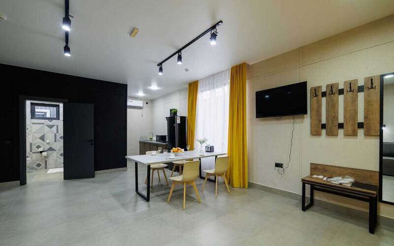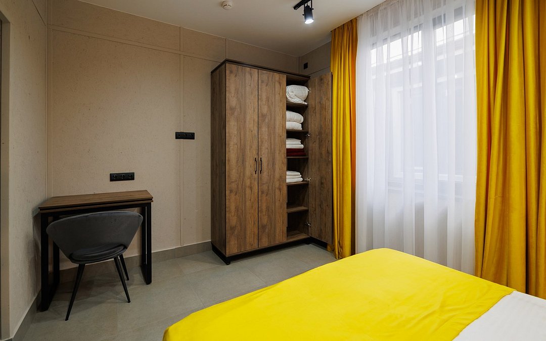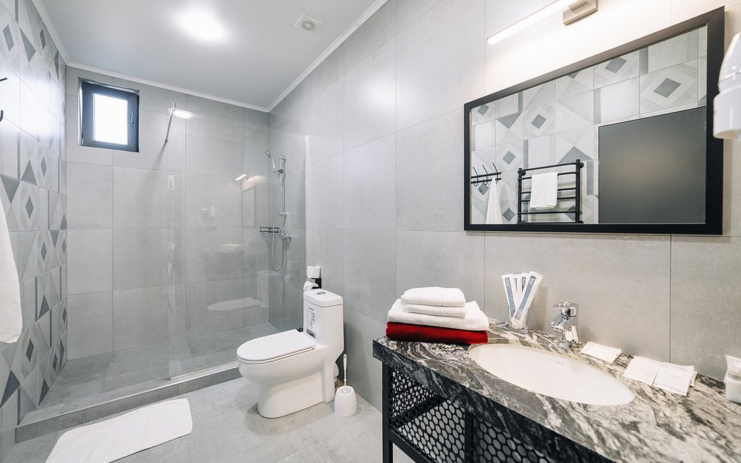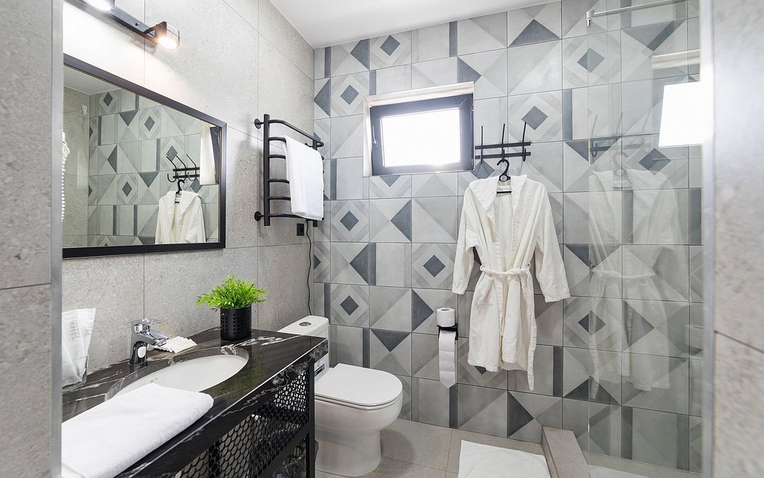 Wi-Fi, телефон, холодильник, светильник, фен, электронные замки, ванная комната, душевая кабина, теплый пол, халаты, банные полотенца, пляжные полотенца, тапочки, косметические средства, двуспальная кровать, стулья, шкаф для одежды, вешалки, письменный стол, багажная тумба, зеркало, письменные принадлежности, чайный набор, информационная карта, меню, сейф, чайник, унитаз, раковина, косметическое зеркало, плиточное покрытие, вид во двор, высокие потолки, стаканы, тумба, туалетные средства, сплит-система, мангал, телевизор со Smart TV, теплые полы, общественный бассейн, фитнес-зона, кресло-кровать, услуги прачечной (платно), вешалки-плечики, бутилированная вода, СПА, шапочка для душаВ номере