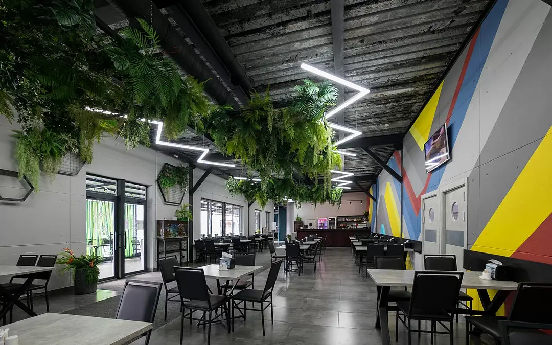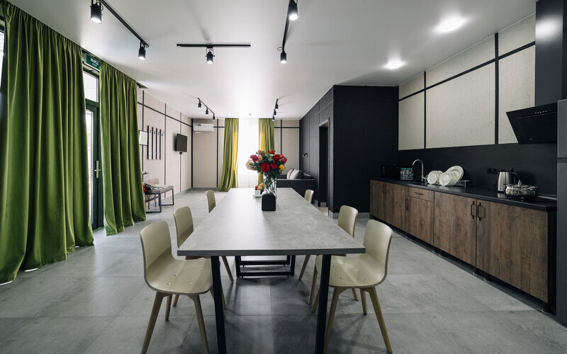 Удобное зонирование позволяет провести бизнес-переговоры, встретиться с друзьями и близкими или собраться дружной и веселой компанией за большим столом. Для маленьких посетителей обустроена детская зона, где они смогут поиграть под присмотром родителей.