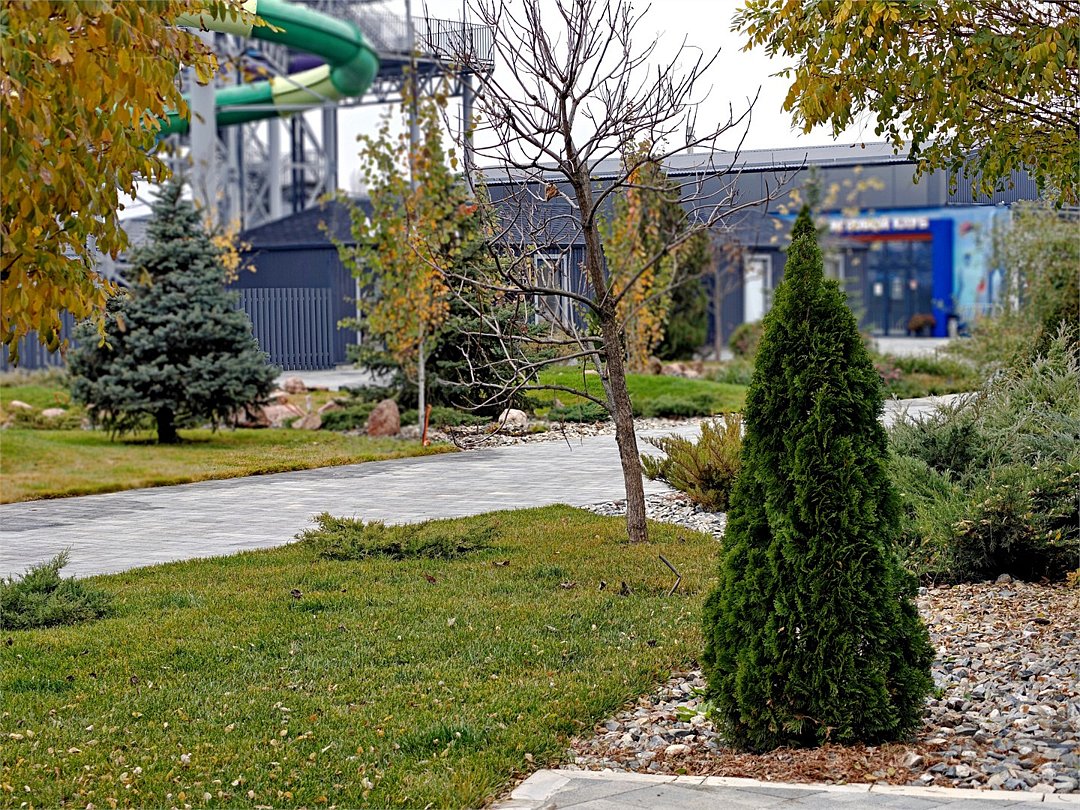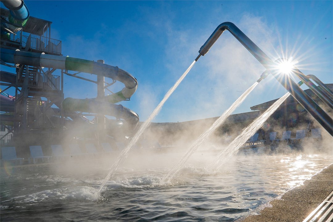 Специальная автоматическая система охлаждает термальную воду (32°–37°), а пресную воду нагревает перед подачей в бассейны (28°–35°) в зависимости от погоды на улице.