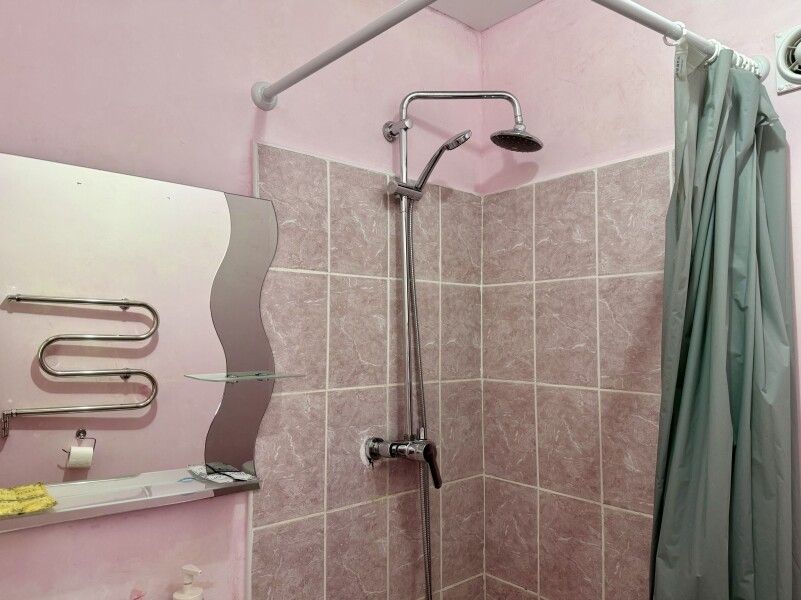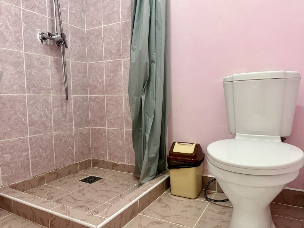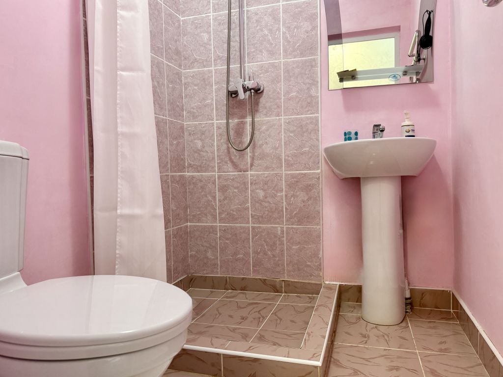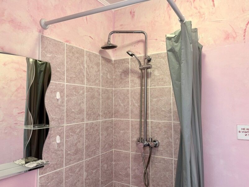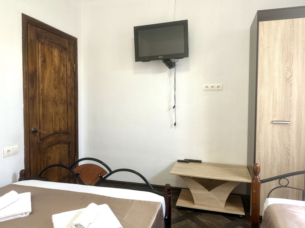 В комнате есть индивидуальная ванная комната с косметическими принадлежностями, телевизор и шкаф.