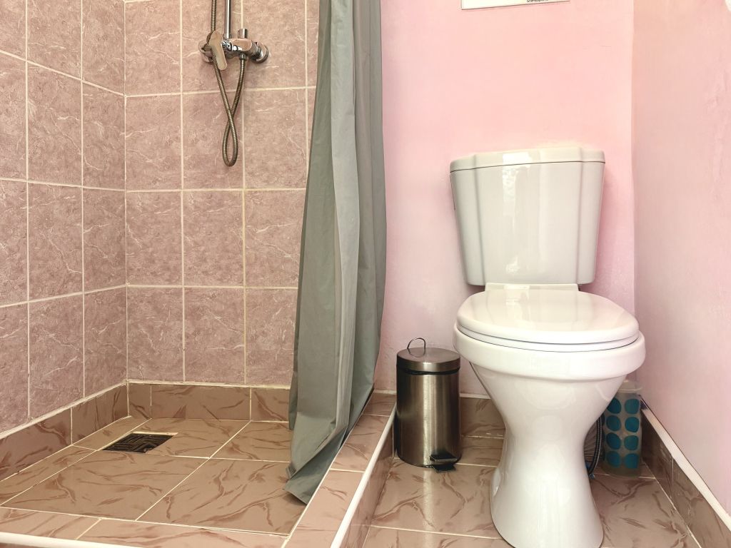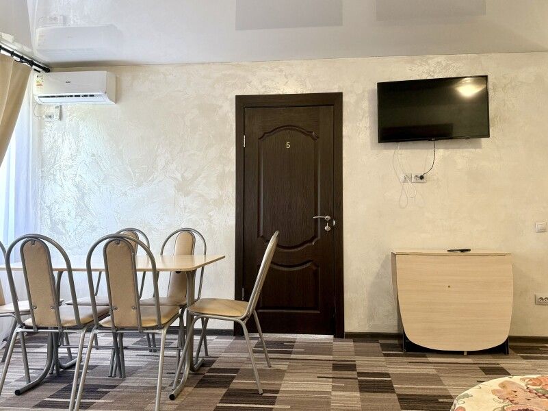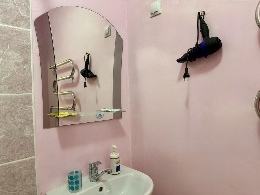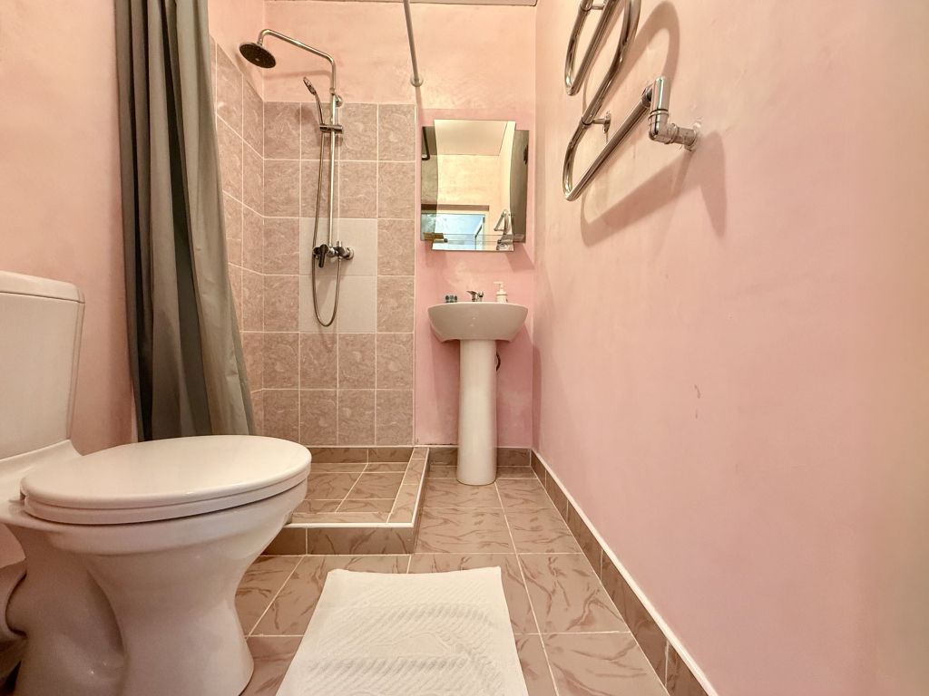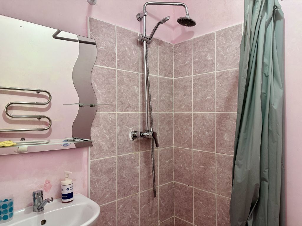 В комнате есть индивидуальная ванная комната с косметическими принадлежностями, телевизор и шкаф.