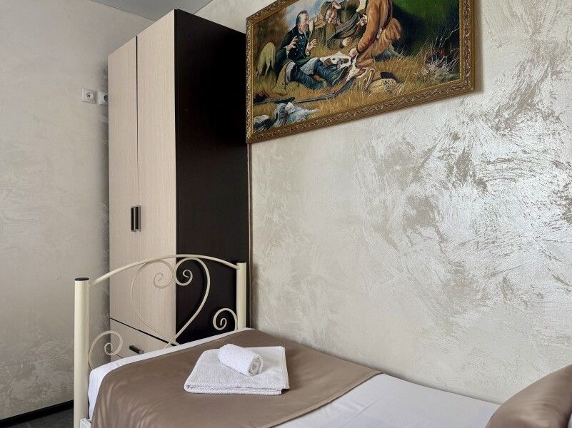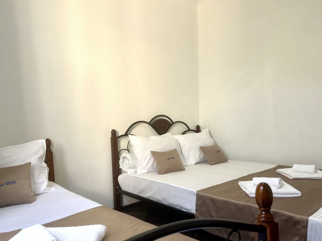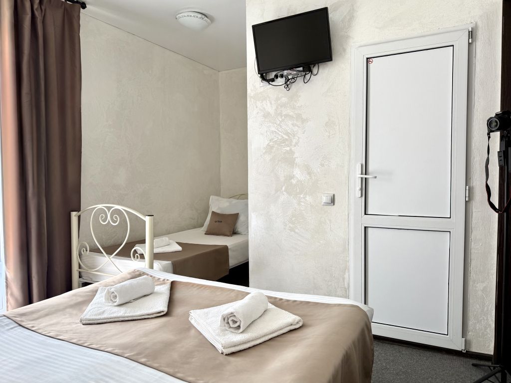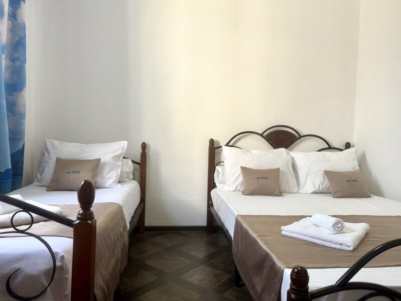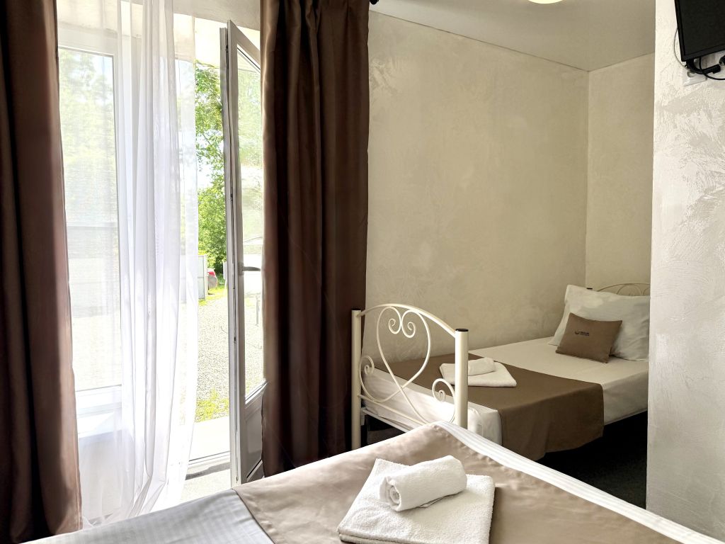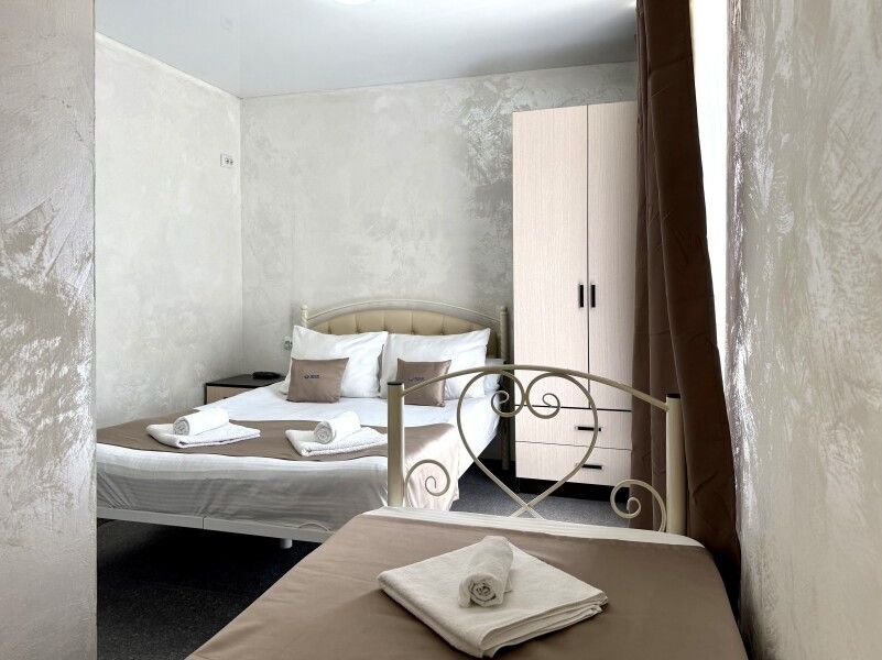 Одна односпальная кровать, одна двуспальная кроватьВ гостиничном номере