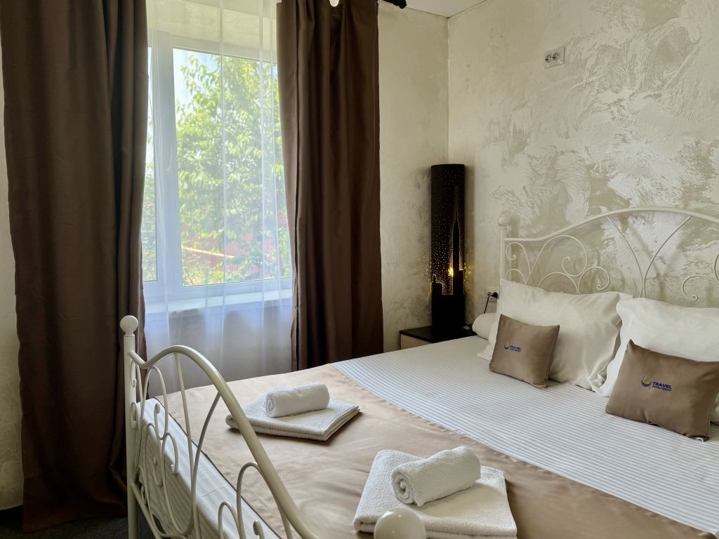 В отдалении от городского шума и суеты расположился уютный гостевой дом «У термальных источников» от Травел Хотелс «Антураж». Комфортный дом площадью 70 кв. м. для семьи из 5 человек.