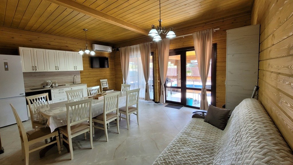 В коттедже три отдельные спальные комнаты с собственной ванной комнатой и тамбуром. Большая кухня-гостиная и все необходимые удобства!