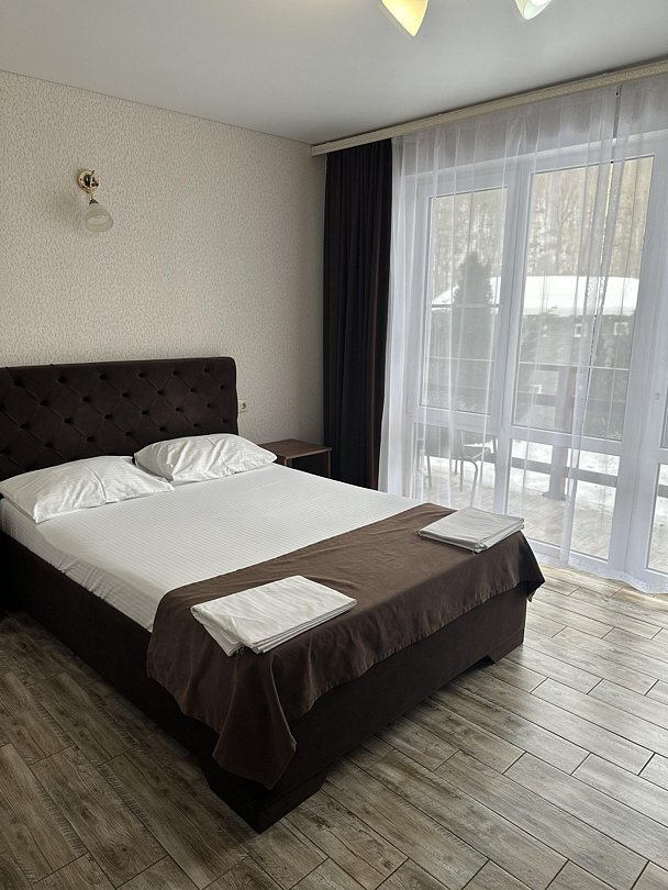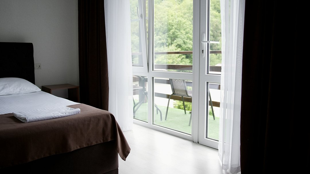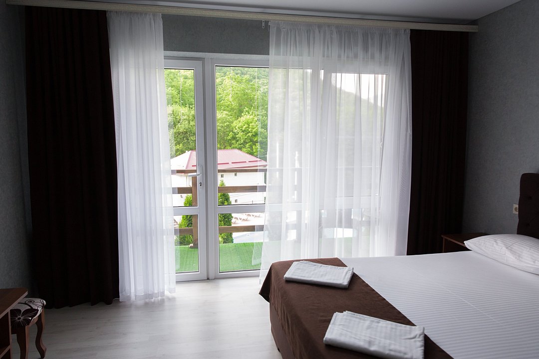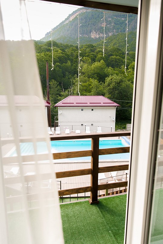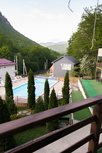 Короткий отпуск с друзьямиОтдых от городской суеты 🍃Хорошая гостиница с новыми, светлыми номерами. В них есть все необходимое от геля для душа до фена. Удобные кровати и тёплые одеяла. Есть балкончики у номеров, где можно посидеть с бокалом вина. Территория зелёная и открывается прекрасный вид на горы. Самое приятное- это бассейн. Работает до ночи, поэтому это отдельное наслаждение искупаться в теплой воде, когда на улице прохладно. Также в проживание включены завтраки, к слову очень вкусные и разнообразные, но если захочется что-то ещё, можно заказать без проблем. Из минусов только отсутствие связи мобильной, но это проблема в принципе Хамышков, в гостинице есть вай фай, поэтому особенно не замечаешь. В общем, это действительно хорошее место, в которое я приезжаю уже не в первый раз