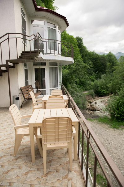 В гостевом доме есть кафе на 48 посадочных мест. Благодаря удобному расположению можно легко организовать активный отдых на свежем воздухе: рафтинг на реке Белой, верховые прогулки, джип-туры, экскурсии по Кавказскому биосферному заповеднику, однодневные походы по местным достопримечательностям — горе Монах, Цербелевым полянам, вершине Нагой-Кош и другим интересным местам.