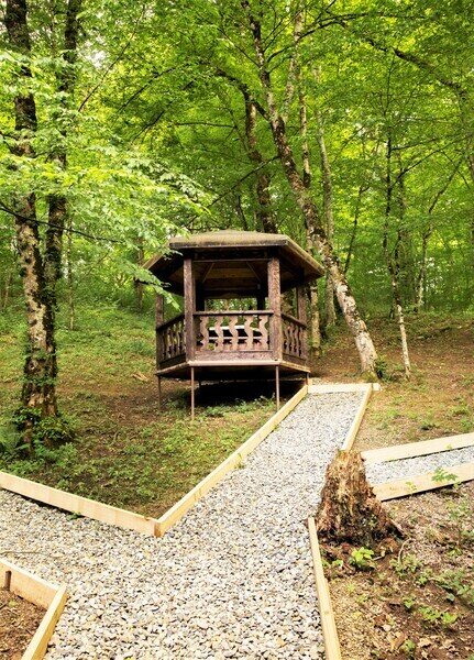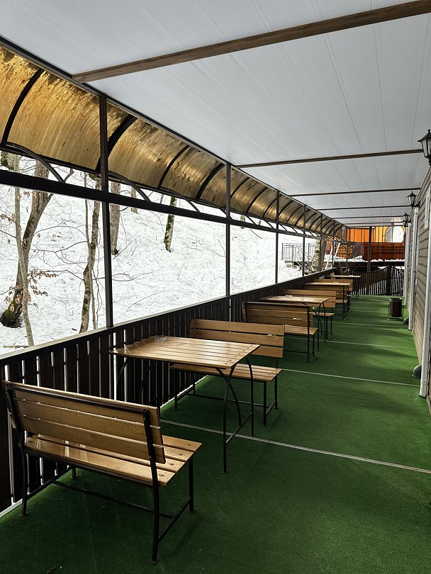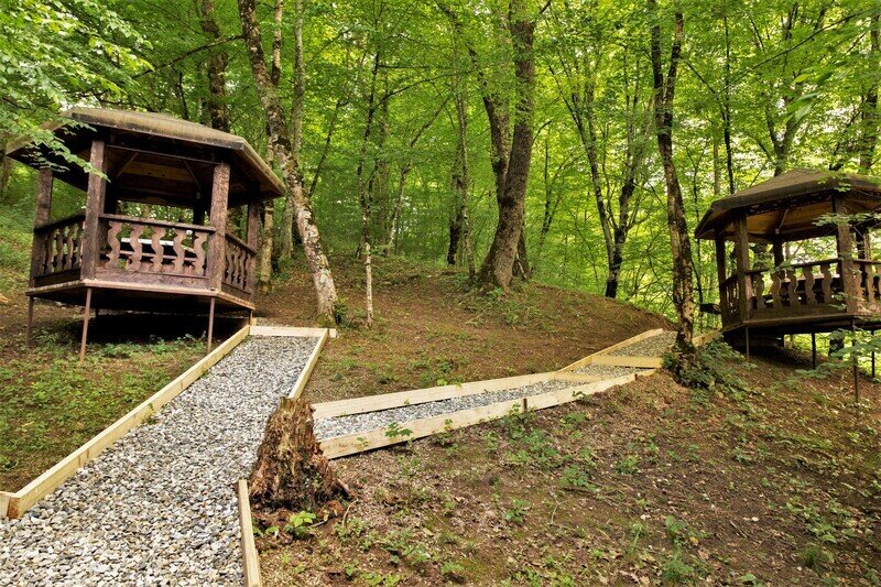 На территории Грин Хаус расположены беседки с мангалами под зелеными кронами деревьев, где можно приготовить шашлык или просто расслабиться, наслаждаясь травяным чаем, звуками леса и свежим горным воздухом. Все беседки освещены электричеством. Также имеется закрытая беседка с камином на 25 человек (дополнительная плата).