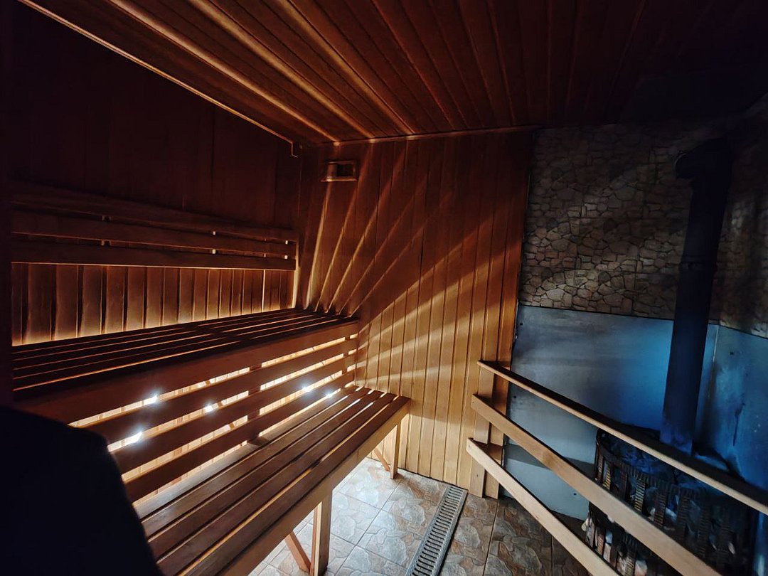 Для вашего удобства на территории гостевого дома имеется финская сауна, оборудованная всем необходимым для незабываемого отдыха и восстановления организма после активного отдыха — просторная зона отдыха, душевая, и, конечно же, холодный бассейн. Уникальный дизайн позволит вам окунуться в атмосферу горной сказки!