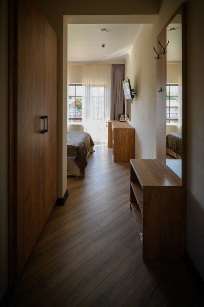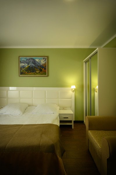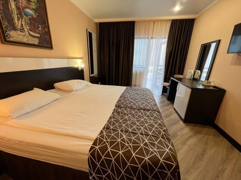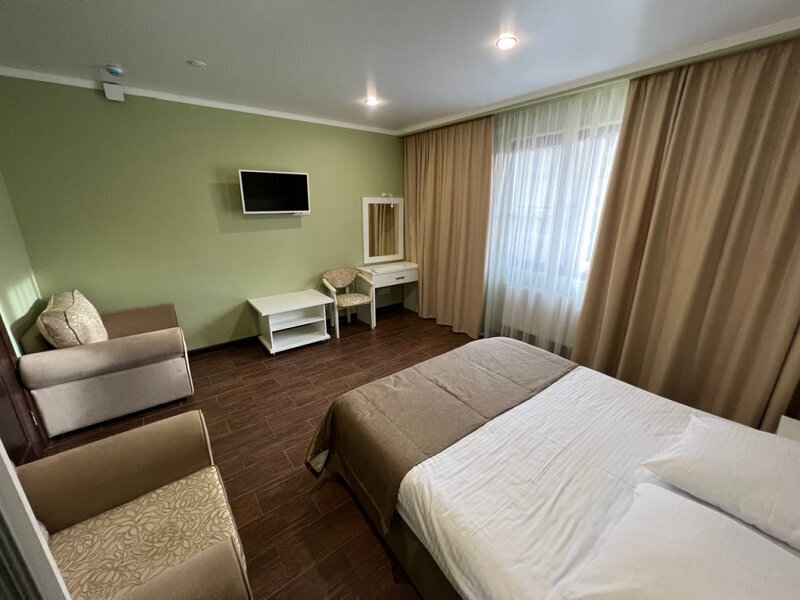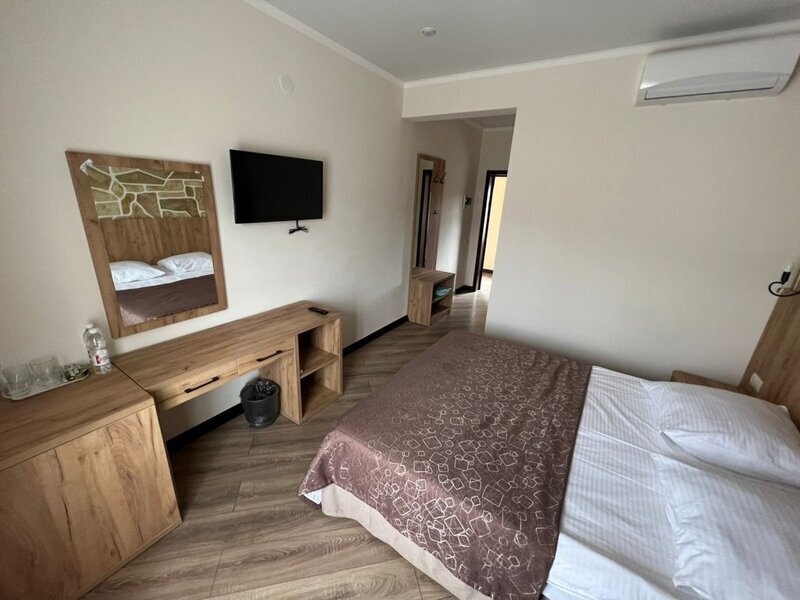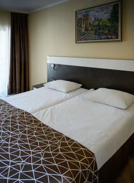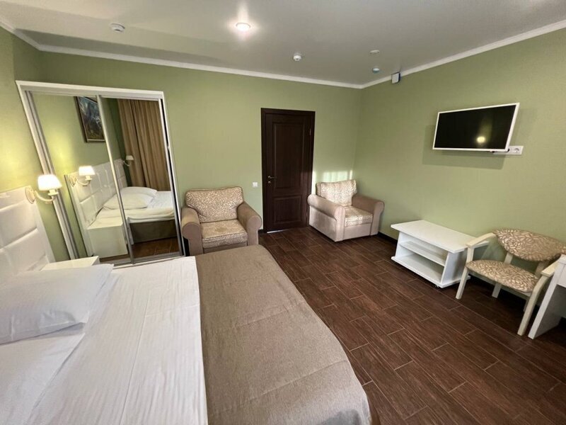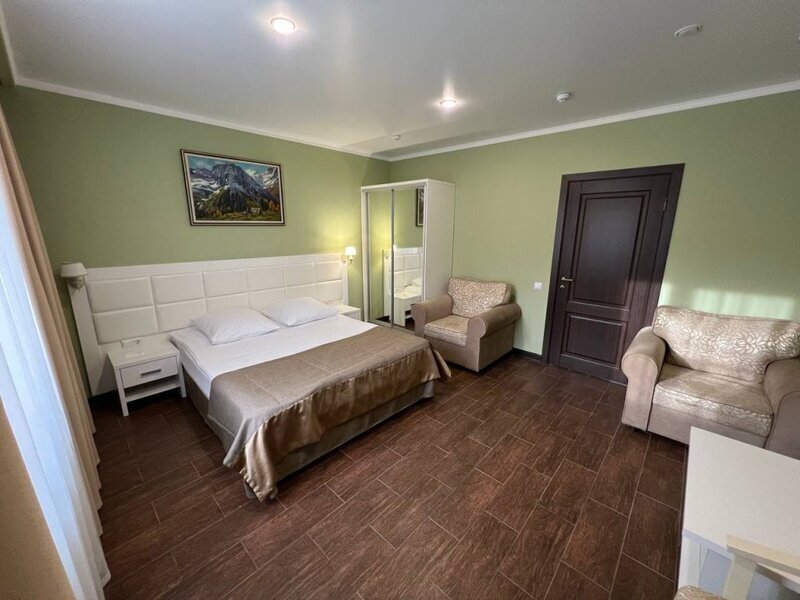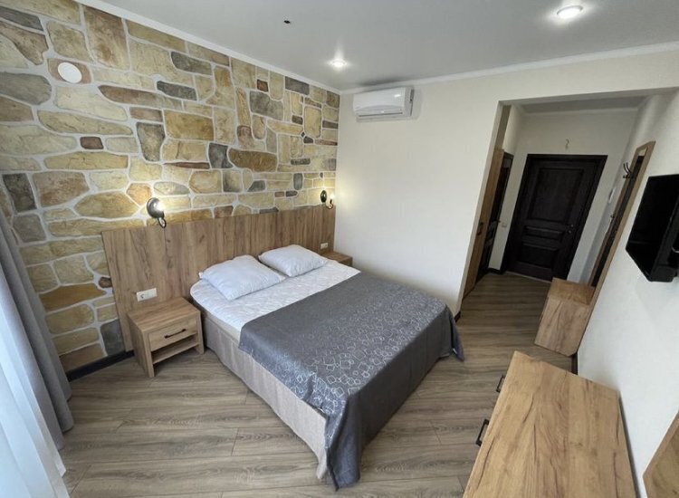 На территории отеля расположены 2 корпуса. В первом корпусе находятся ресторан, конференц-зал и номера категории комфорт с панорамными окнами. Второй корпус включает номера категории стандарт и люкс. В каждом номере есть телевизор, одноразовые тапочки, шампуни, фен и набор из трёх полотенец на каждого гостя.