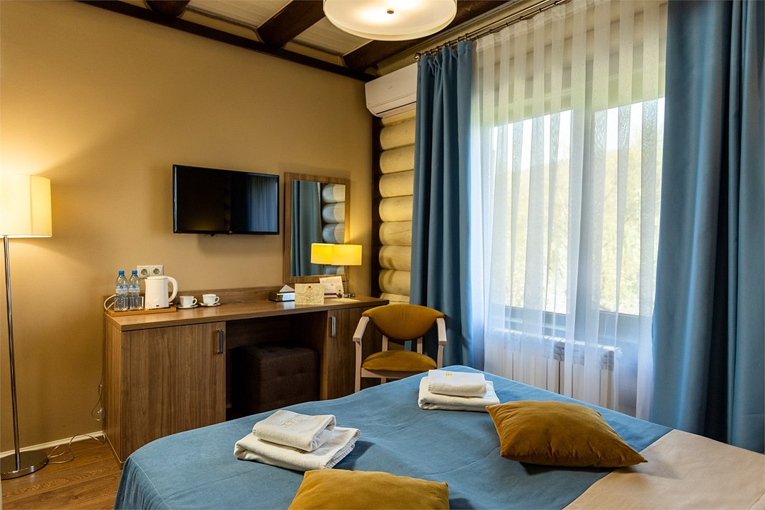 Wi-Fi, светильник, настольные лампы, фен, электронные замки, душевая кабина, халаты, банные полотенца, тапочки, гигиенические средства, косметические средства, двуспальная кровать, ортопедический матрас, тумбы, шкаф для одежды, вешалки, багажная тумба, зеркало, чайный набор, обслуживание номеров, информационная карта, меню, сейф, чайник, унитаз, раковина, косметическое зеркало, питьевая вода, отопление, стаканы, стул, стол, туалетные средства, сплит-система, цифровое тв, внутренний телефон, телевизор с плоским экраном, мини-холодильник, москитная сетка, гостиничная парфюмерия, вид на горы, usb порт, вид на лес, пуфик, без питомцевВ гостиничном номере
