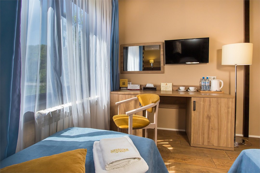 В номере: две односпальные кровати 80х200, гардероб, зеркало, письменный стол, стул, пуф, телевизор, мини-холодильник, сейф, чайная станция, чай, кофе, бутилированная вода, душ, туалет, халаты, тапочки, комплект полотенец для номера и для бассейна, фен, косметические принадлежности итальянского производства (шампунь, кондиционер, гель для душа, лосьон для тела, мыло, зубной набор, шапочка для душа, расческа). Дети 0-5 лет могут размещаться без доп. места. Одновременно в номере могут размещаться максимум 2 ребенка 0-5 лет без предоставления доп. места. Детская кроватка-манеж предоставляется бесплатно по запросу. Завтрак без доп. места предоставляется для детей в возрасте 1-5 лет. Максимально возможная вместимость номера: 2 гостя + 1 или 2 ребенка 0-5 лет без доп. места.Услуги и удобства
