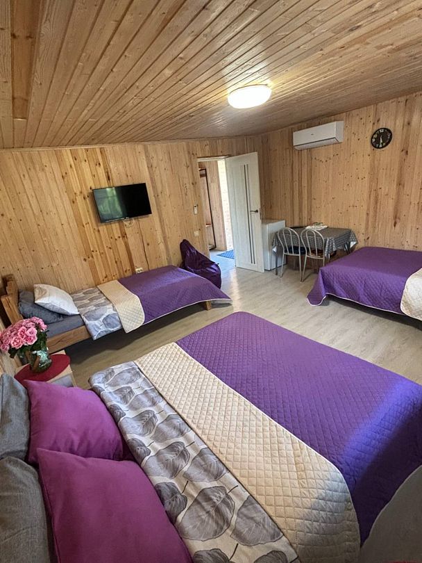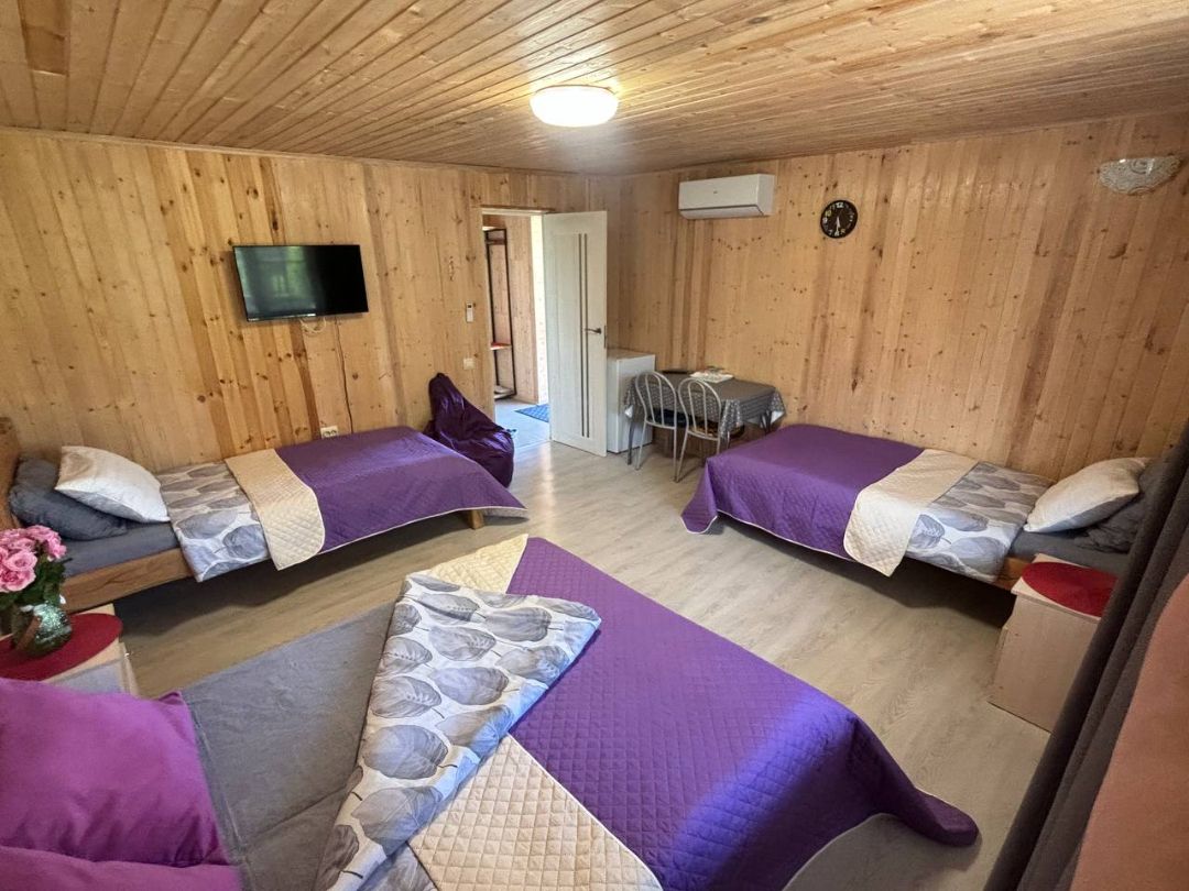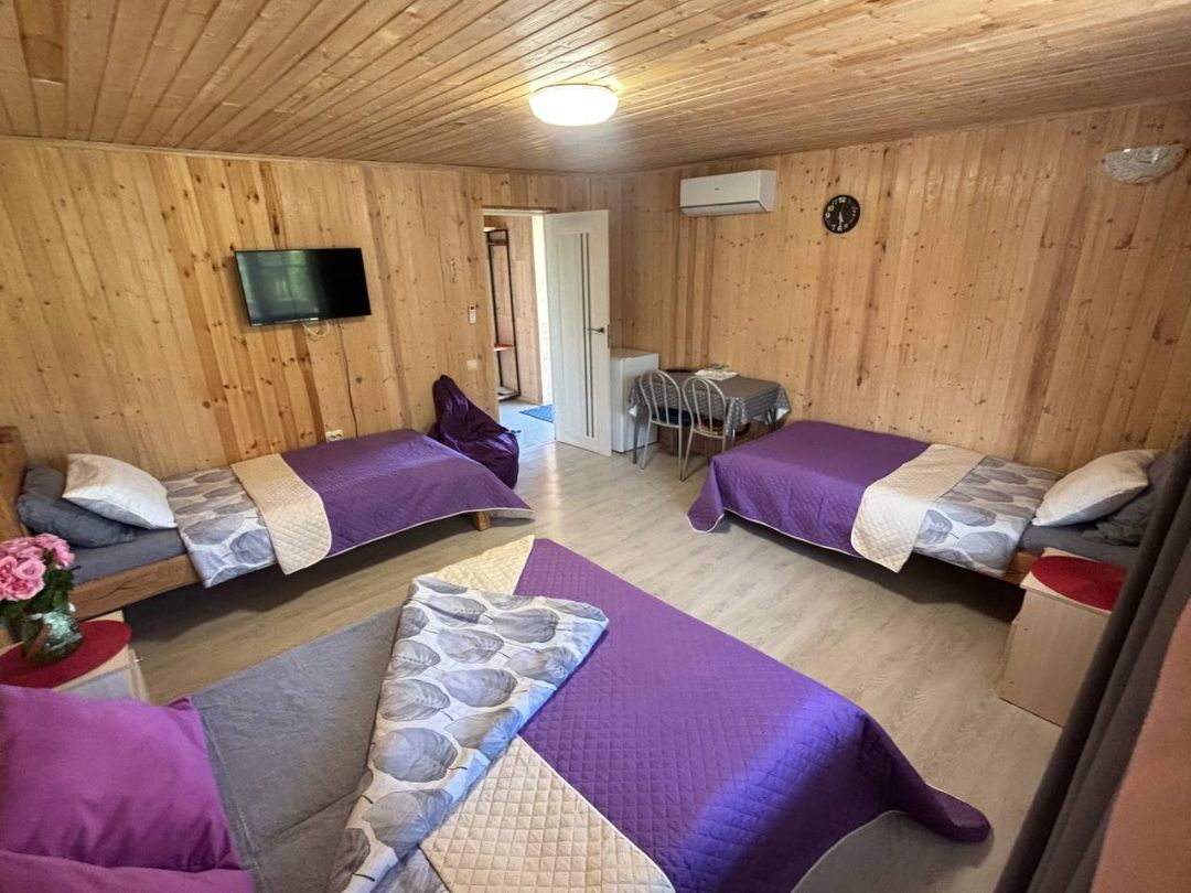 Добро пожаловать на территорию отдыха «Иверия» в живописном месте, имеется всё для комфортного отдыха. В данном номере могут разместиться до восьми человек, в номере есть все необходимое для отдыха, санузел, душевая.
