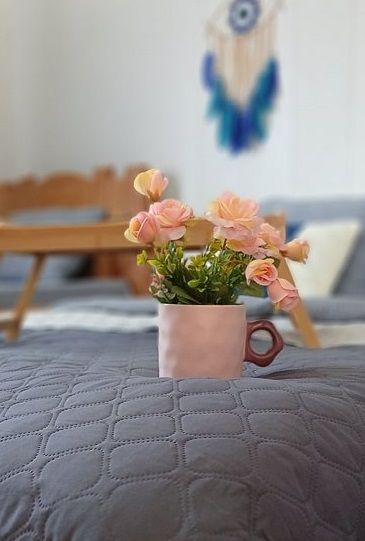 Для вас: чистое постельное белье, фен, средства гигиены, тапочки. Есть собственный выход на террасу, откуда открывается красивый вид на горы.