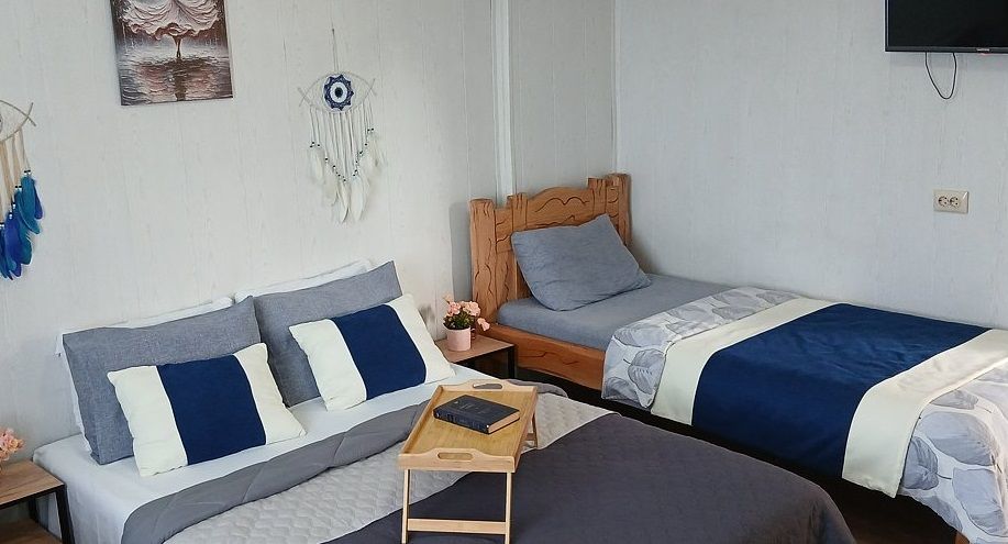 Двухместный комфортабельный номер со всем необходимым для проживания, собственная душевая, кондиционер в номере.