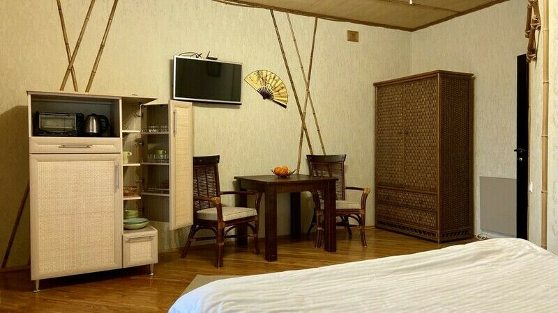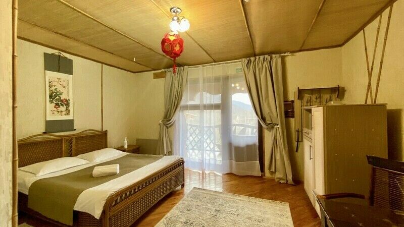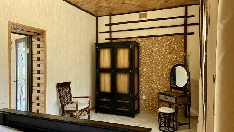 В интерьере использован бамбук, дерево, рисовые обои. Мебель ручной работы из натуральных экологически чистых материалов.