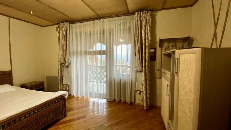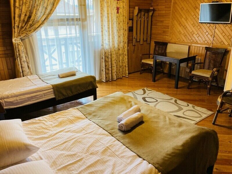 Трехместный однокомнатный номер с балконом и видом на горы.