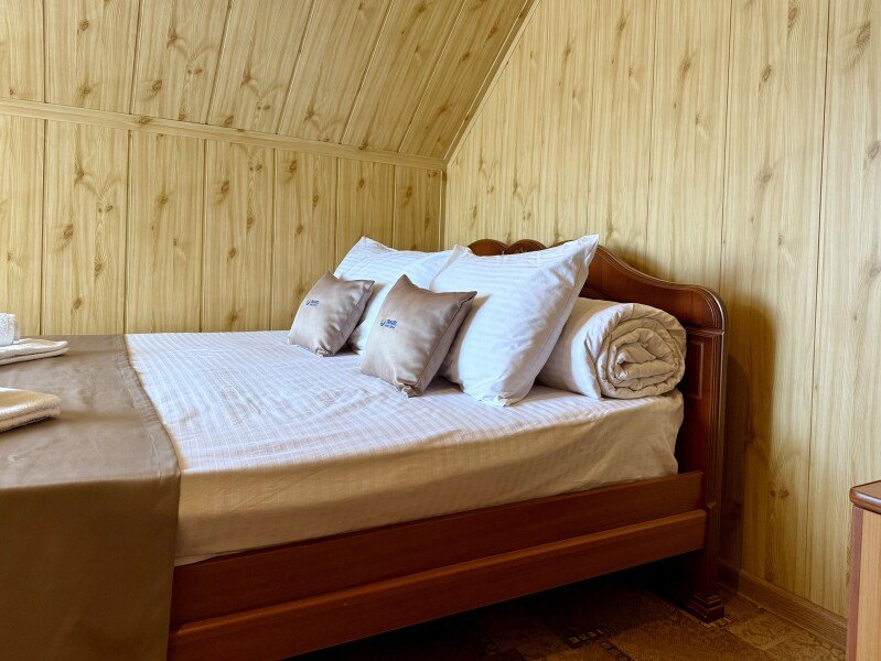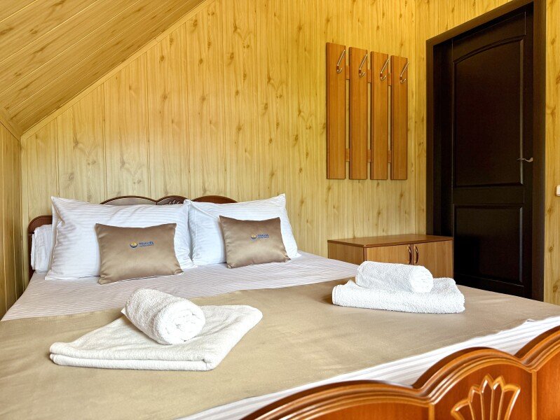 Комната с двуспальной кроватью, где после активного дня на природе вы окунётесь в тишину и отдых.