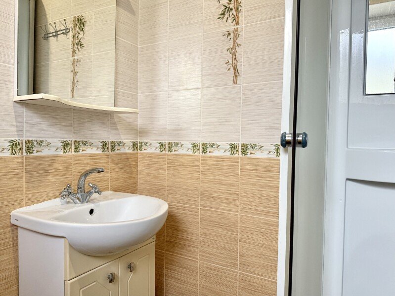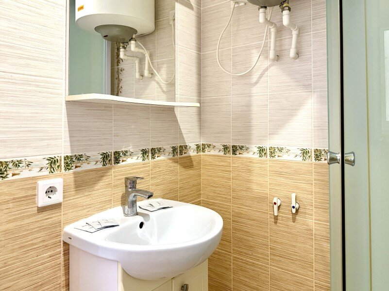 Интерьер продуман до мелочей: есть комод, зеркало, вешалка, всё необходимое для комфортного пребывания.