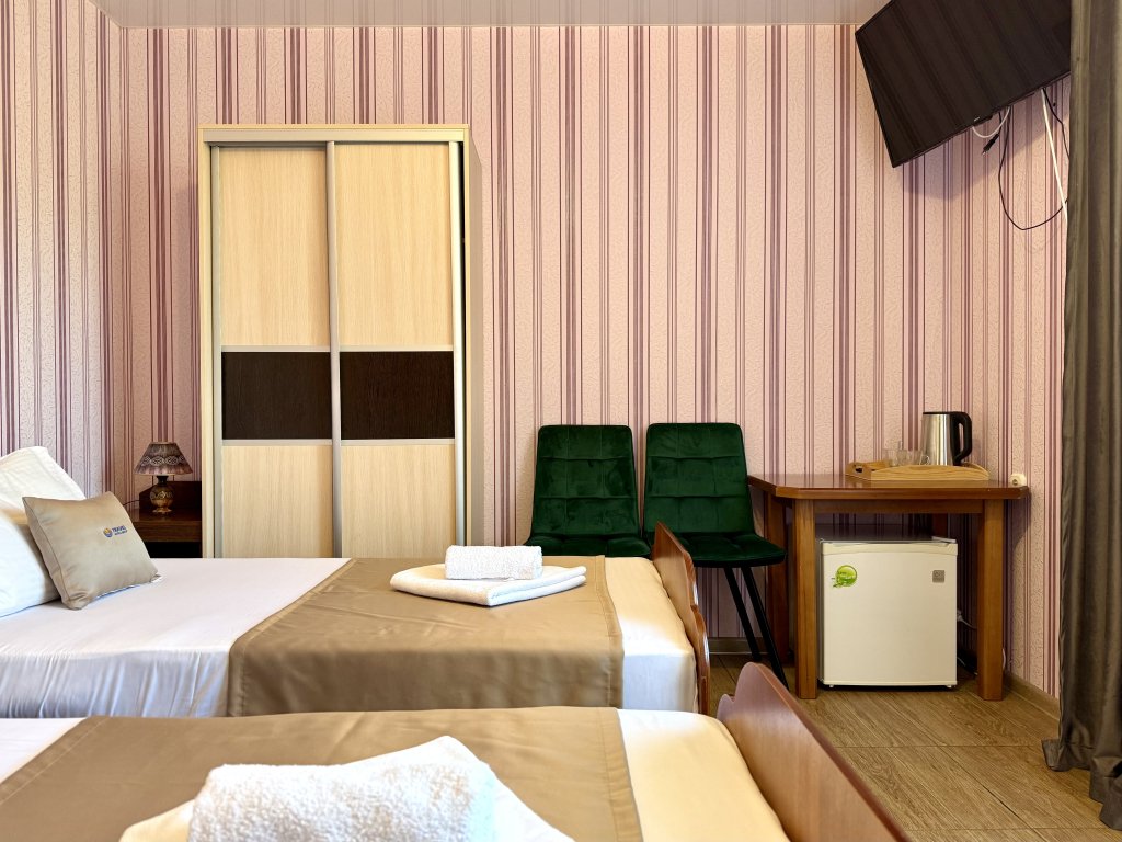 Здесь создано пространство, где каждый найдет комфорт по душе. Выбирайте из уютных экономных вариантов или просторных люксов — все номера продуманы до мелочей, чтобы ваше пребывание было по-настоящему приятным.