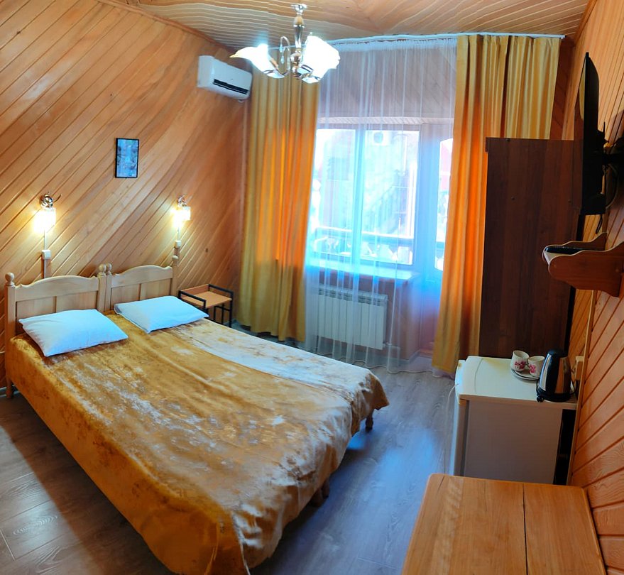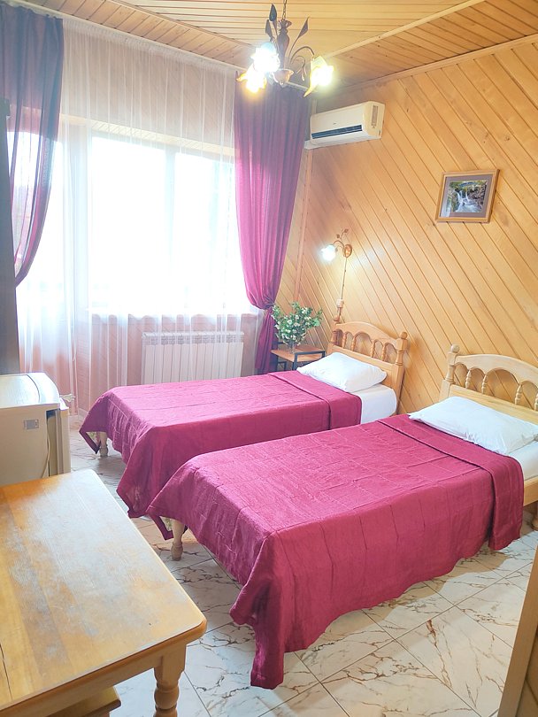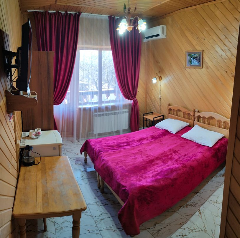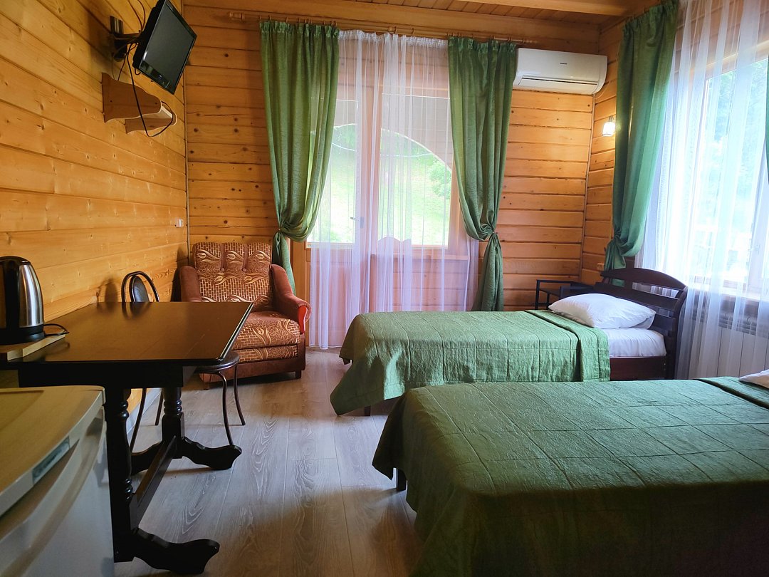 Семейный отдыхДостоинстваМесто для отдыха лучше в Адыгее не найдешь. Тишина, спокойствие, красота, горный воздух. Находится база около гор, красота дикой природы очарует любого. В номере просторно, комфортно, уют. Природных красивых мест для прогулок масса, скучать не будет никто.