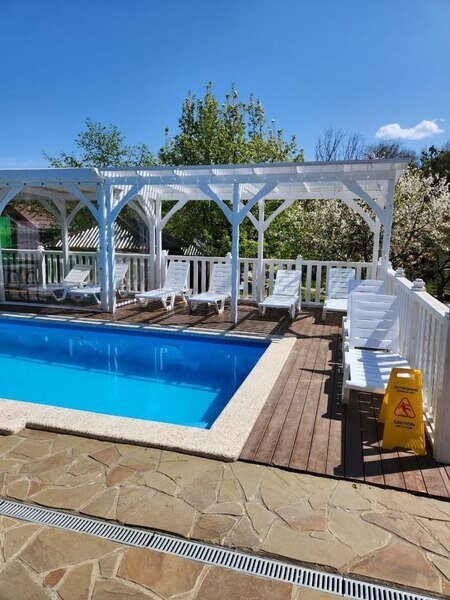 Читать полностьюГостевой дом располагает круглогодичным бассейном с подогревом, поддерживающим комфортную температуру воды в зависимости от сезона. Вода в бассейне проходит регулярную автоматическую дезинфекцию. Рядом с бассейном оборудована зона для загара с удобными лежаками, а в зимнее время предусмотрена закрытая зона для переодевания. Поблизости находится холодильник с напитками, чтобы гости могли освежиться во время водных процедур.