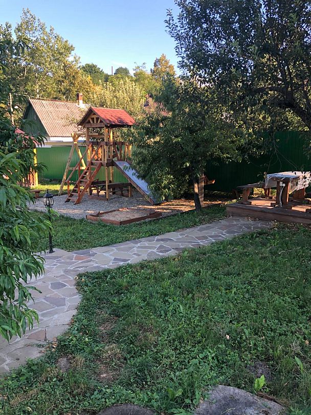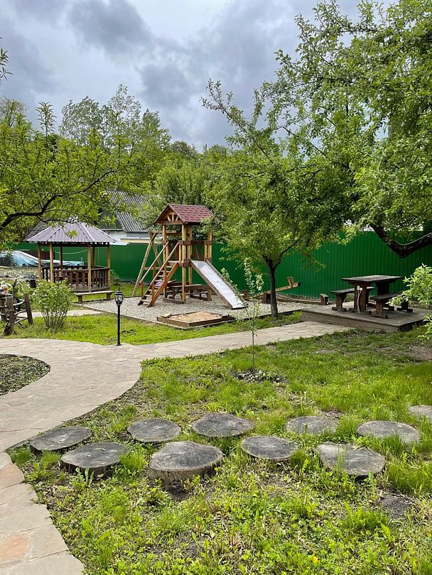 Гостевой дом встречает детей детской площадкой изготовленной из дерева — экологически чистого материала (качели, горка, песочница). Детская площадка находиться в непосредственной близости от беседок и мангальной зоны, что позволяет находиться детям в видимости родителей.