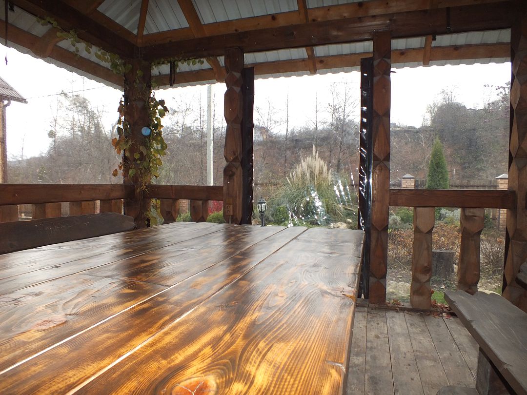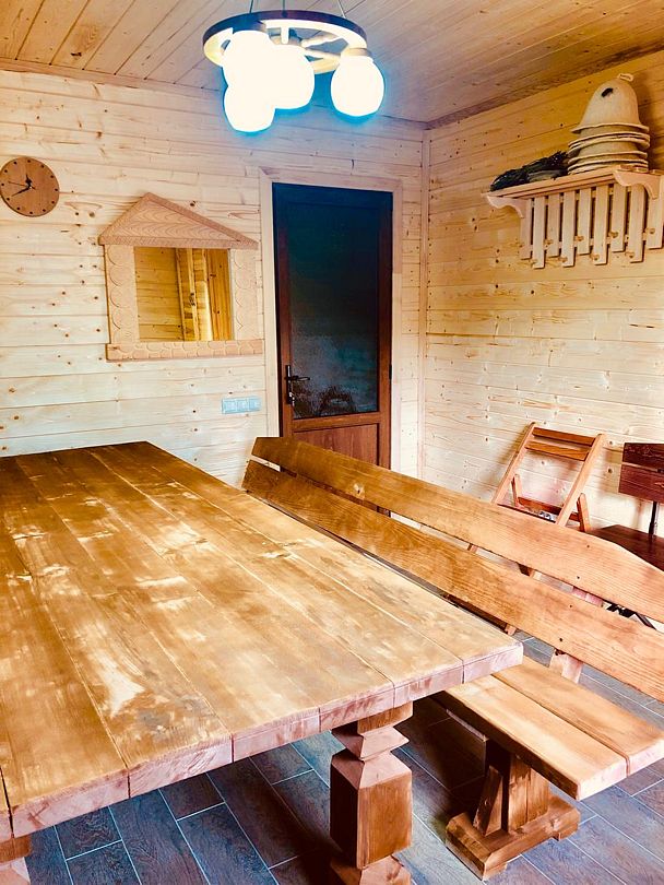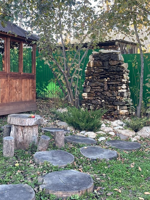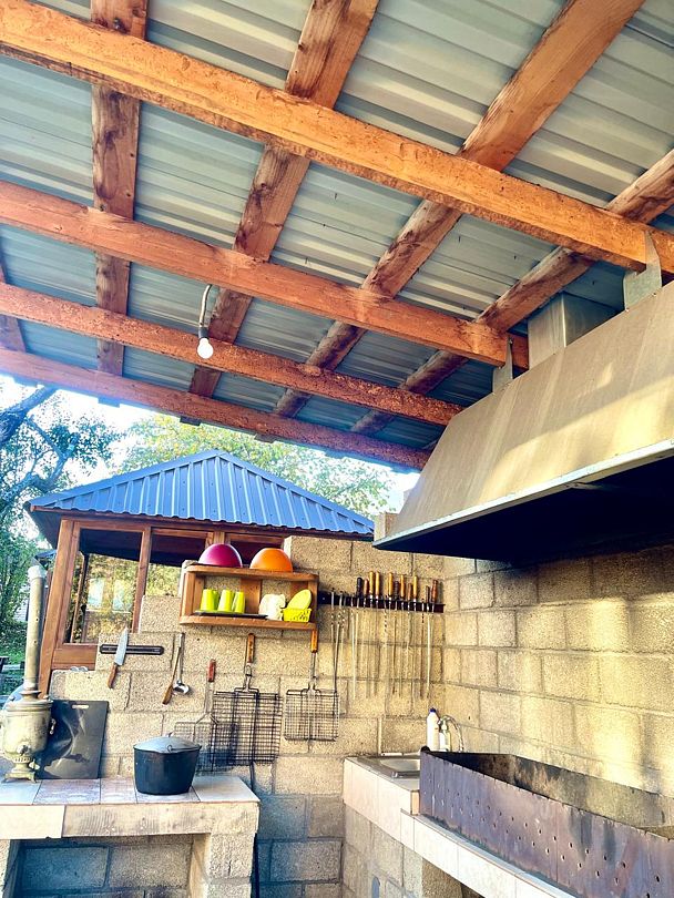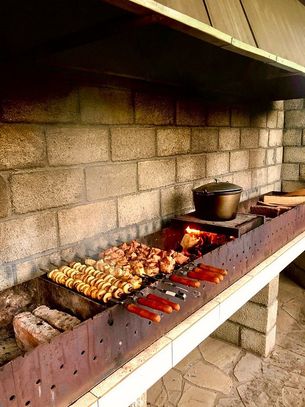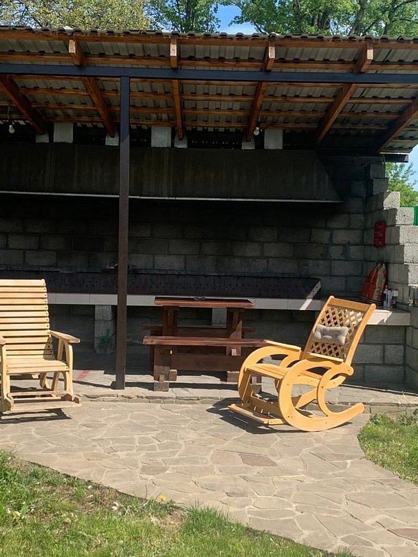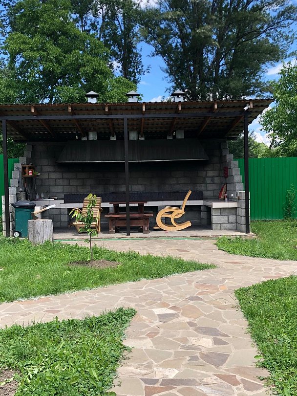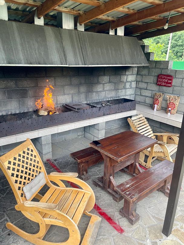 Гостевой дом имеет оборудованную мангальную зону длиной 6 м., на которой имеется кран с водой, шампуры, сетки для жарки, казан для пользования. Также стол и кресла-качалки для наблюдением за огнем. За дополнительную плату можно приобрести дрова, уголь, розжиг.