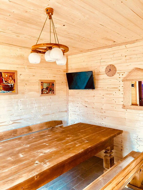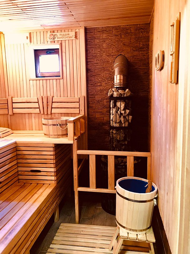 Инфраструктура: бассейн, полотенца, простыниМинимальное время аренды: 2 часаНа территории гостевого дома находится русская баня на дровах (услуга за дополнительную плату). Помимо парной в бане имеются подвесные ведра для облива ледяной водой, комната отдыха со столом, лавками, телевизором, посудой и чайником для размещения до 12 человек. Выдаются простыни. Также за дополнительную плату можно приобрести различные веники, травяные чаи и мед.