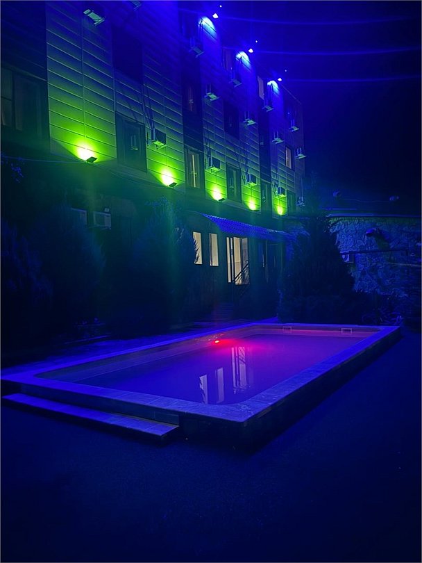 На территории комплекса есть сауна с бассейном и системой фильтрации, комнатой отдыха и зоной для застолья. Сауна работает круглосуточно. В наличии есть одноразовая посуда, предоставляется возможность разогрева блюд и охлаждения напитков. В стоимость включены банные комплекты (полотенца, простыни и тапочки). До 8 человек.
