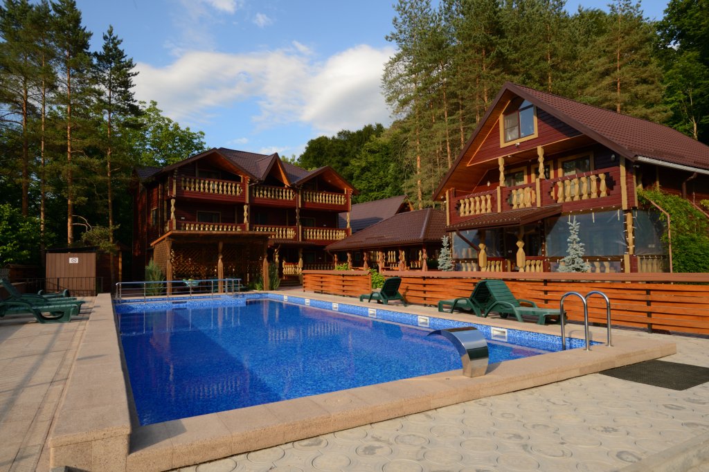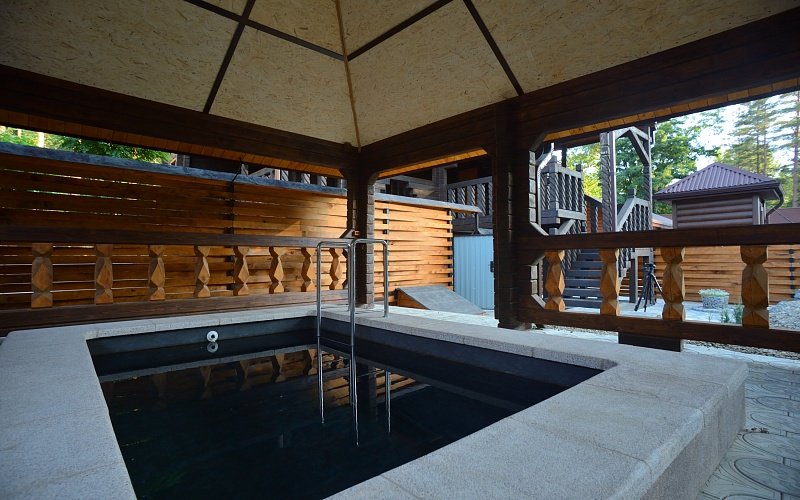 Деревянная баня вместительностью до 8 человек. Баня с купелью расположена на берегу реки и огорожена от посторонних глаз.