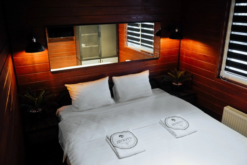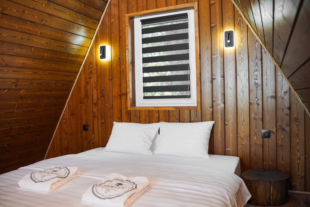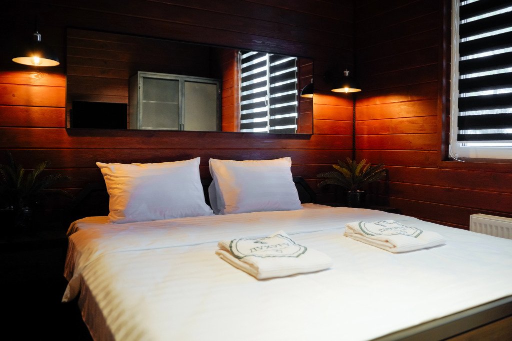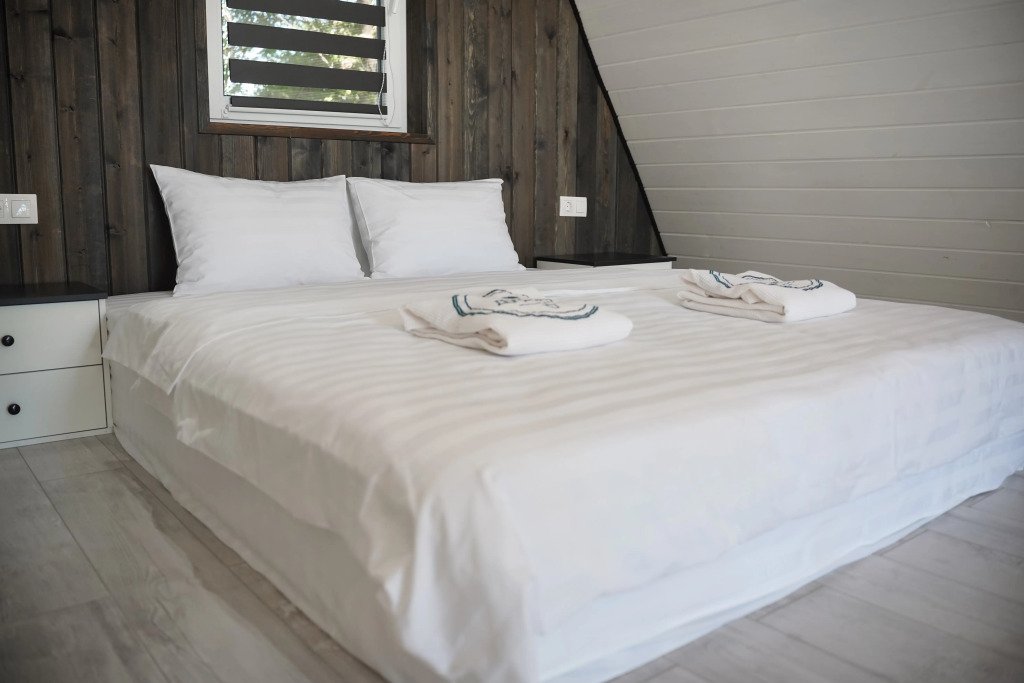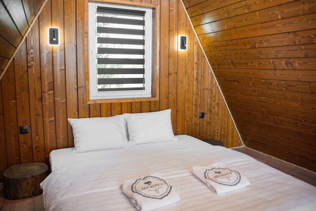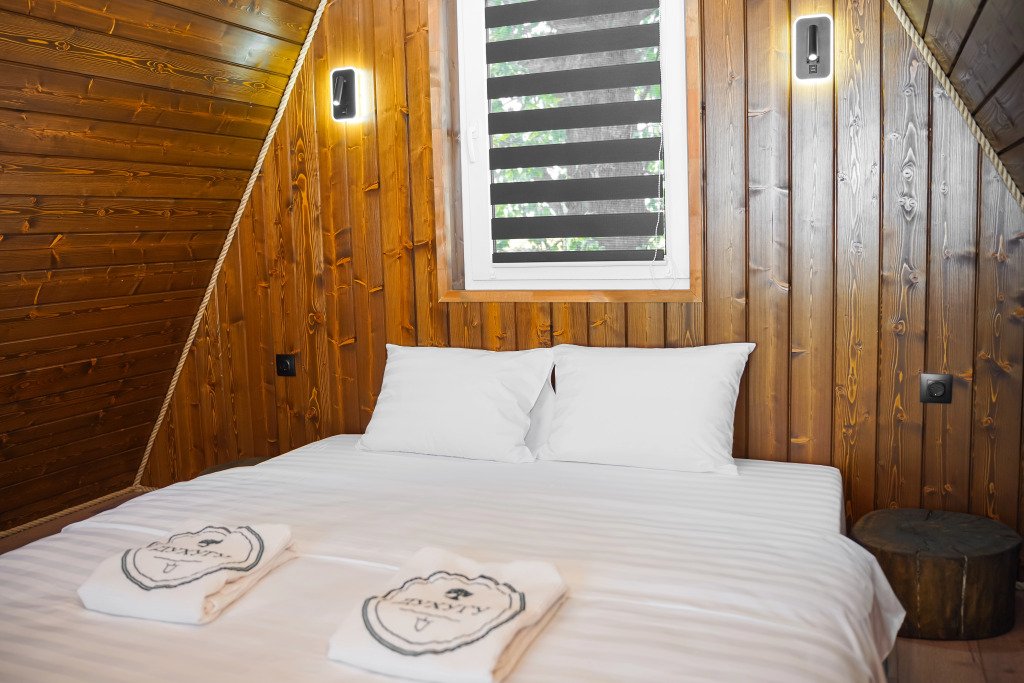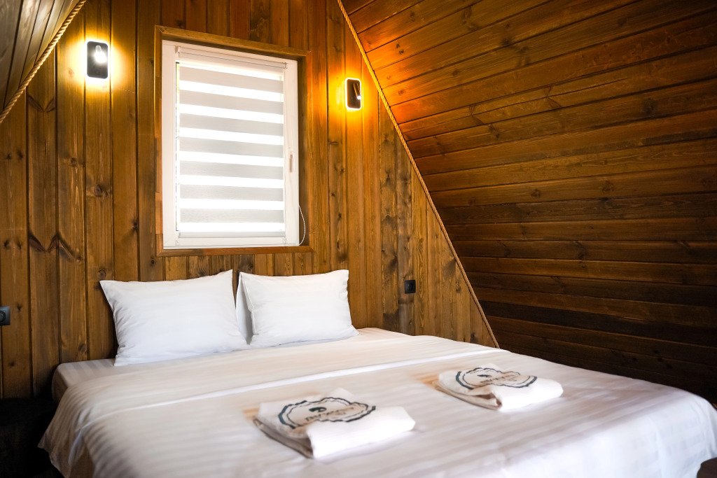 Двухместный коттедж с видом на озеро двуспальная кровать
