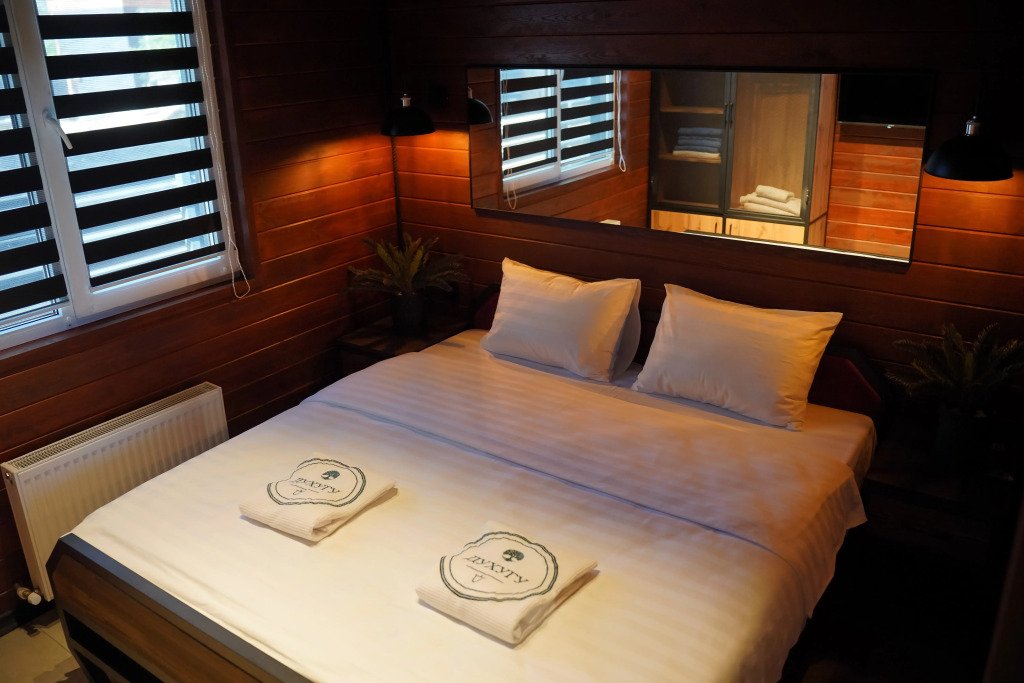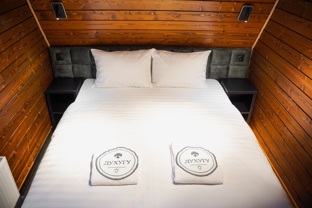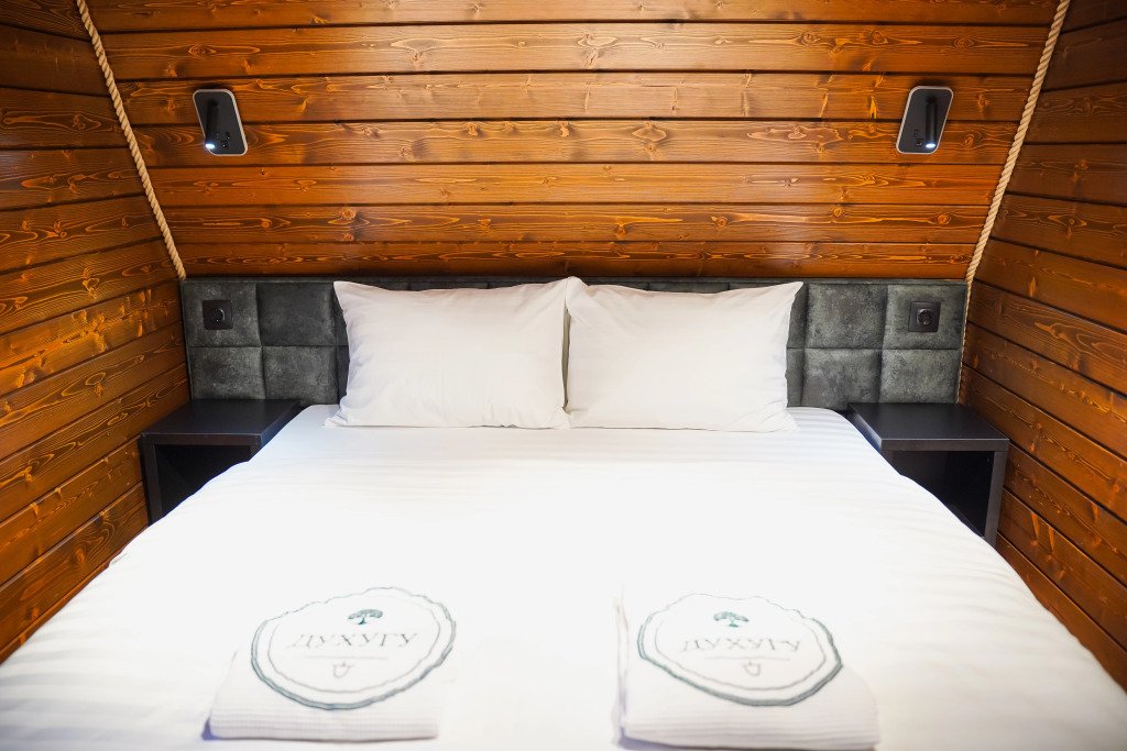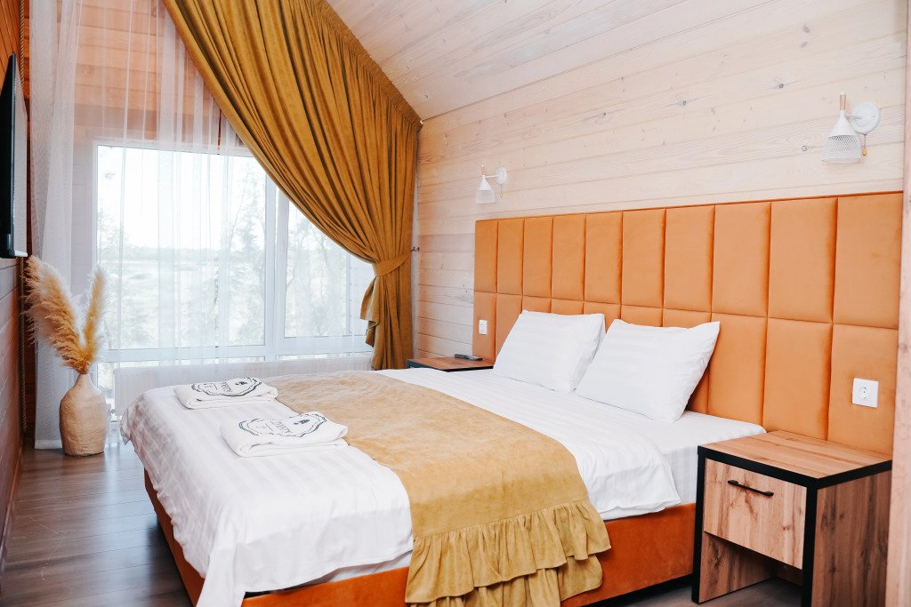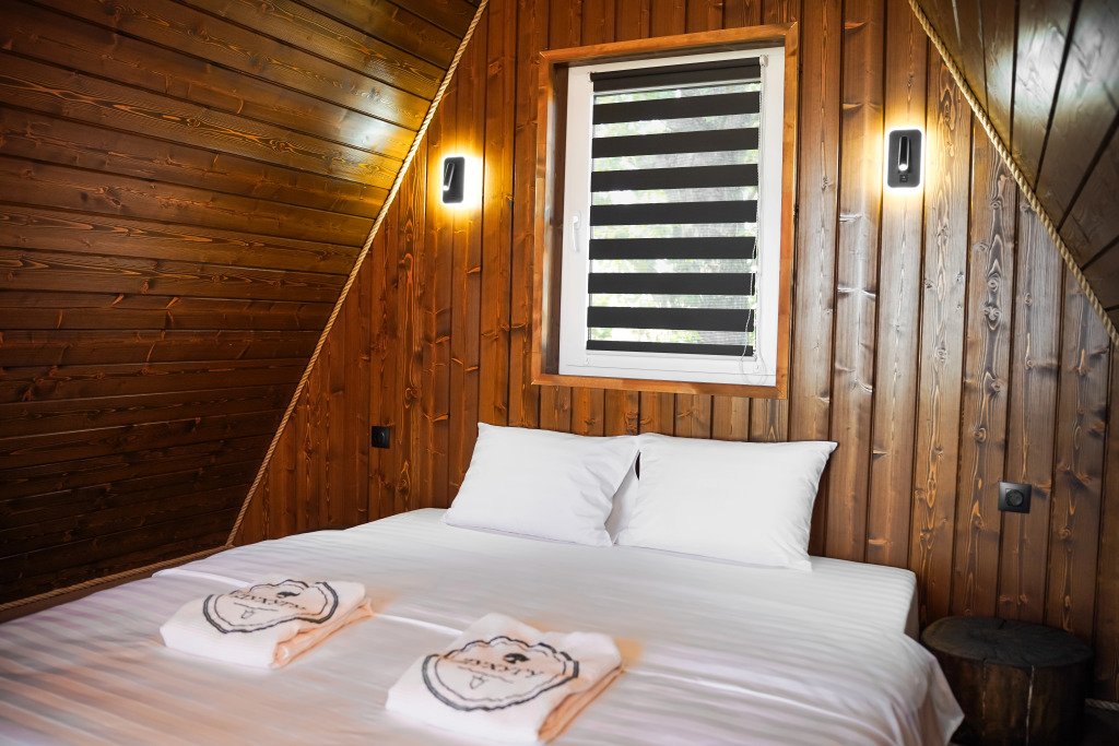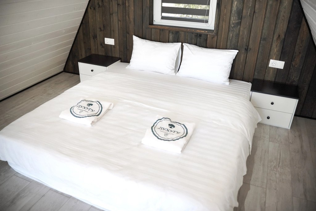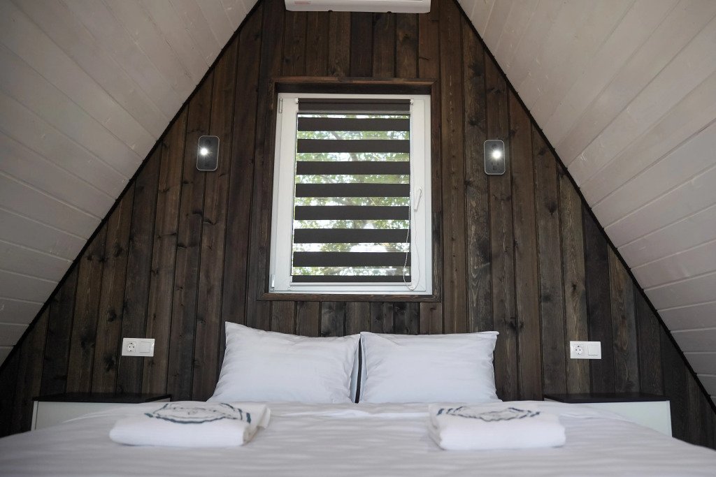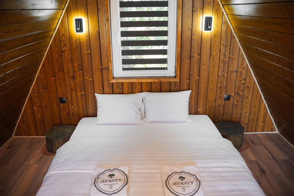 Двухместный коттедж с видом на озеро двуспальная кровать