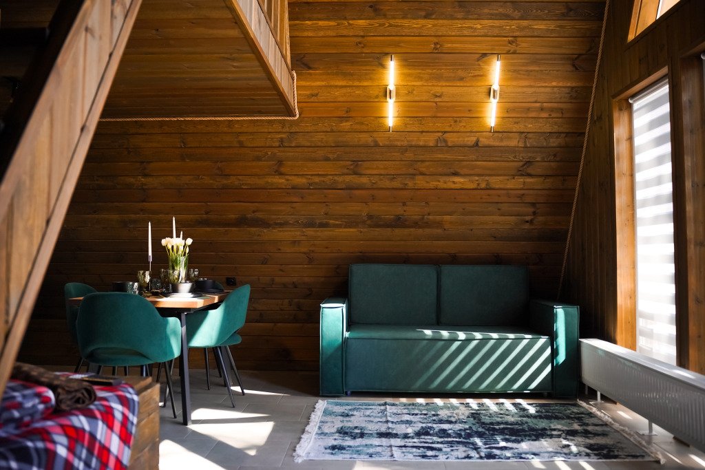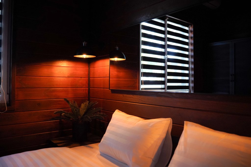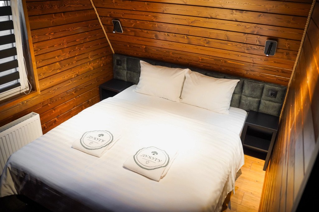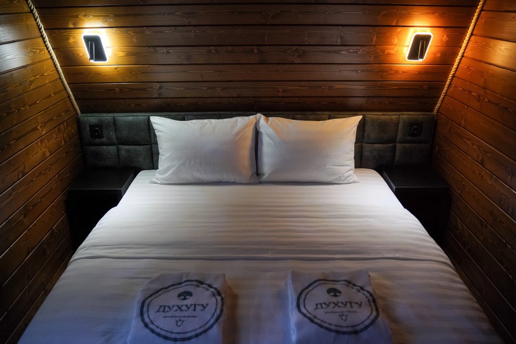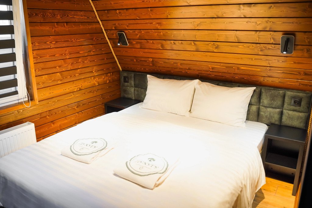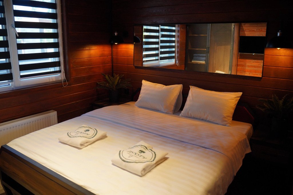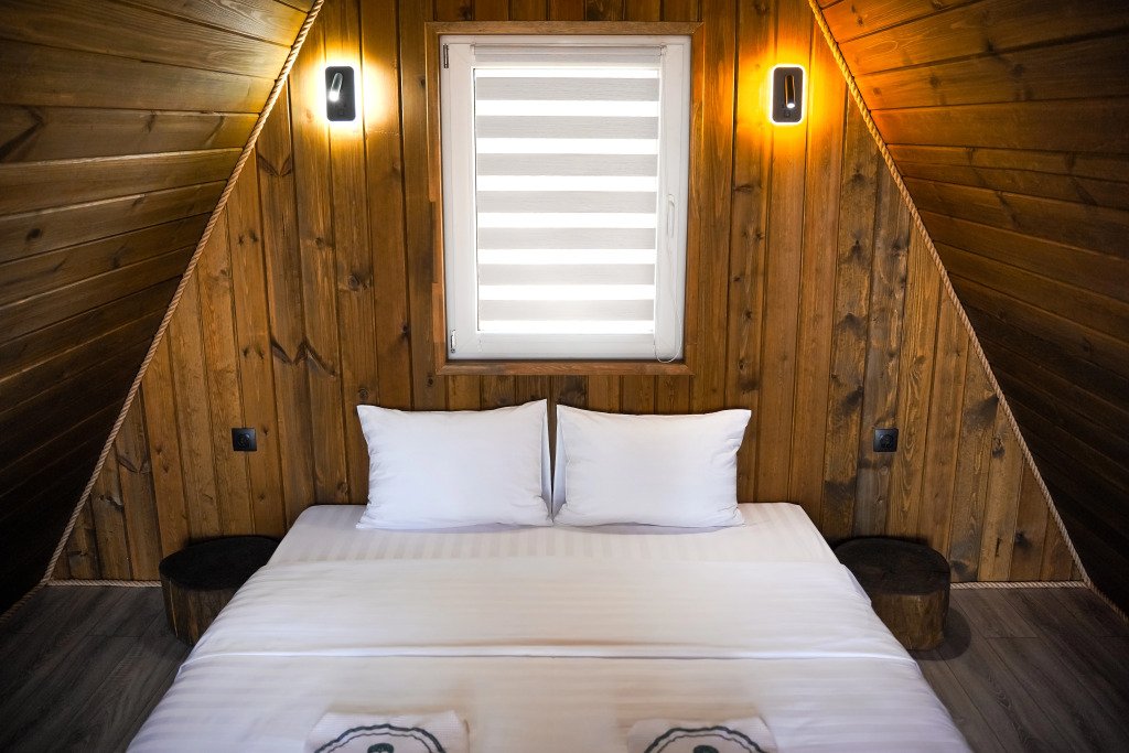 Двухместный коттедж с видом на озеро двуспальная кровать