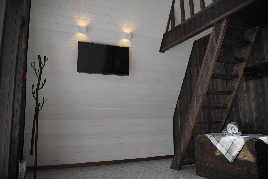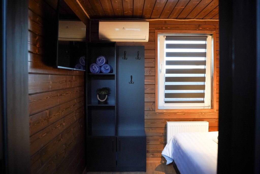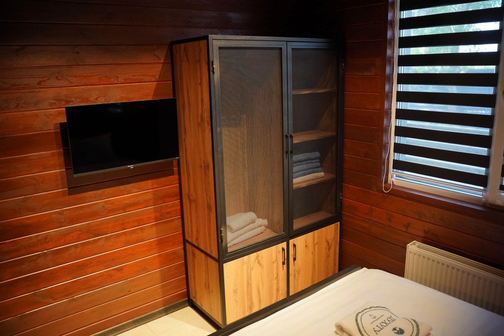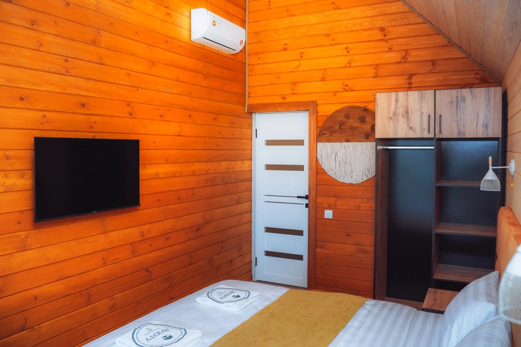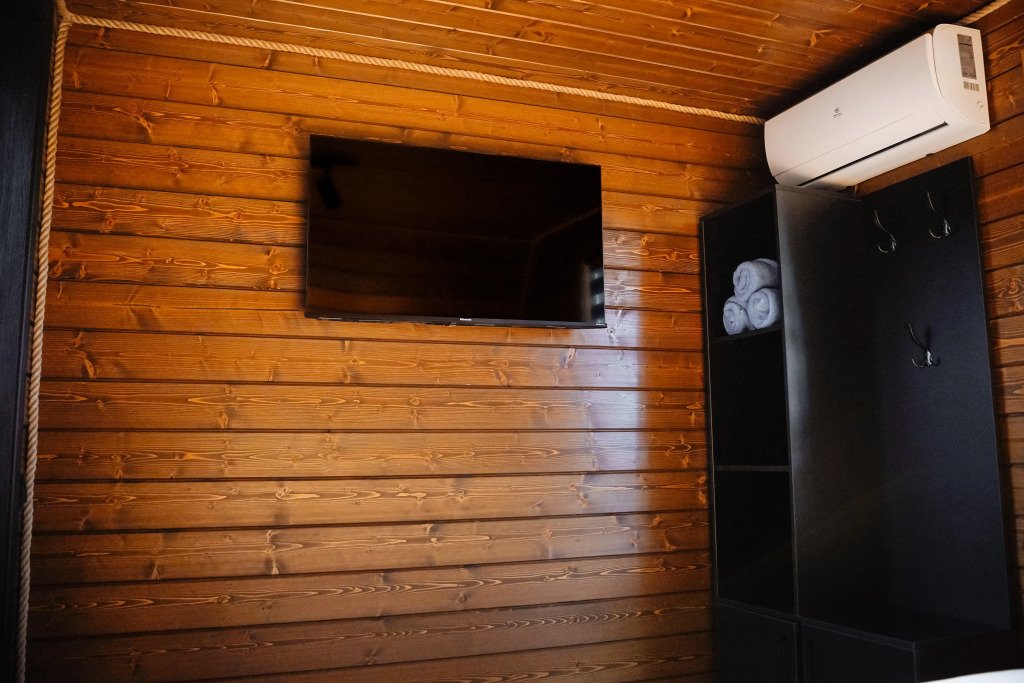 В номере вы найдёте телевизор. Оснащение зависит от выбранной категории номера.
