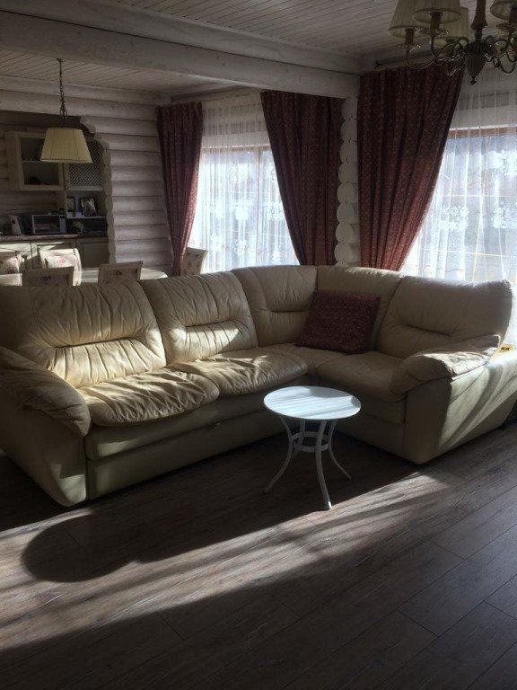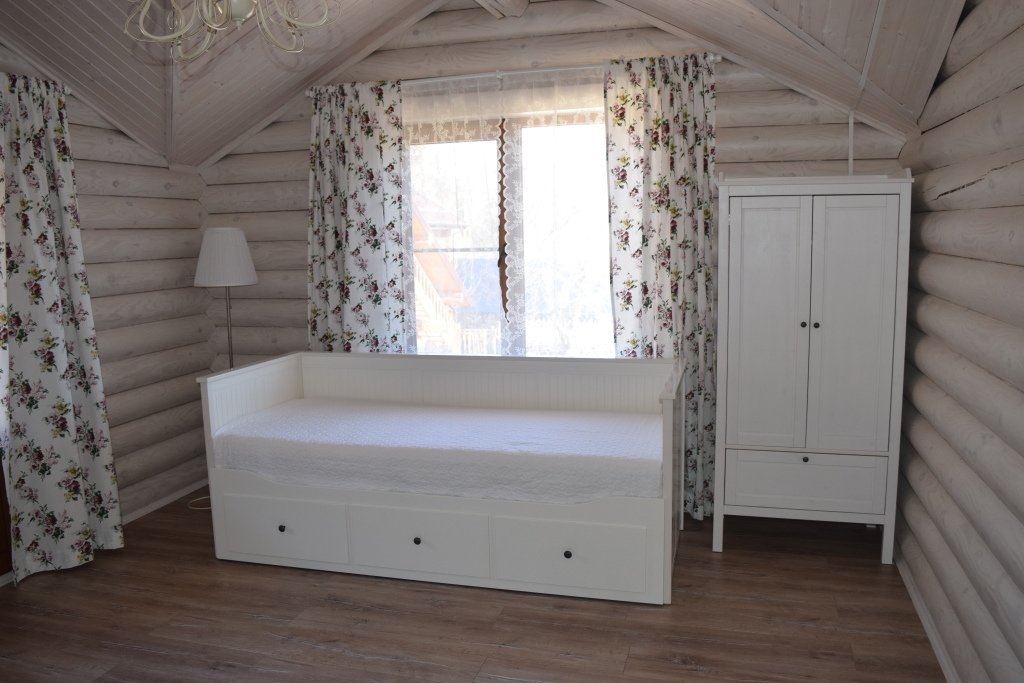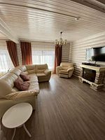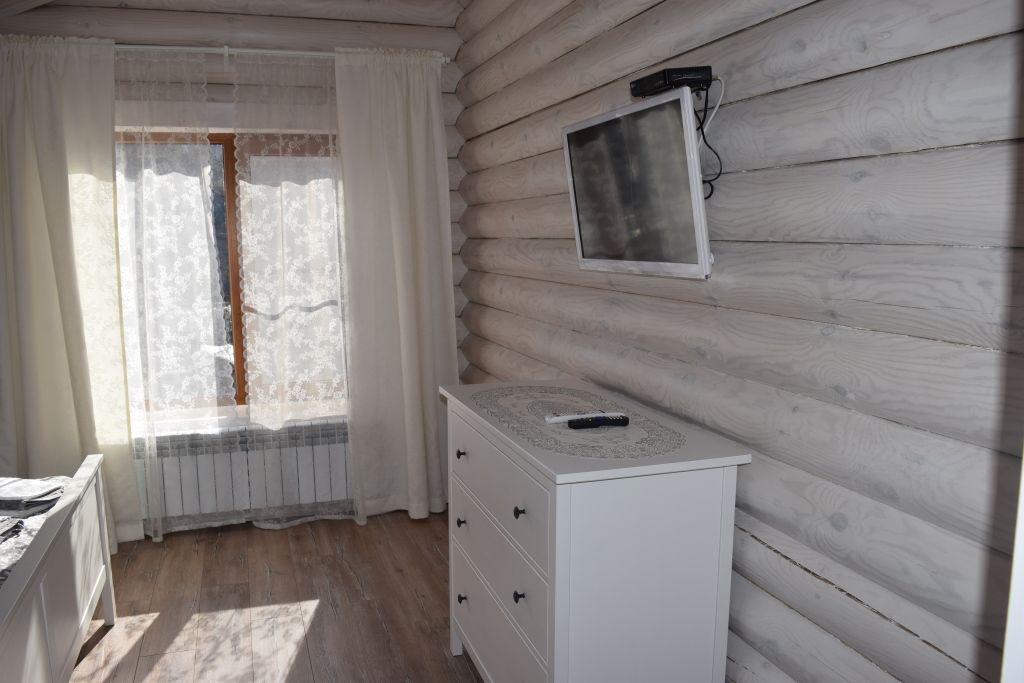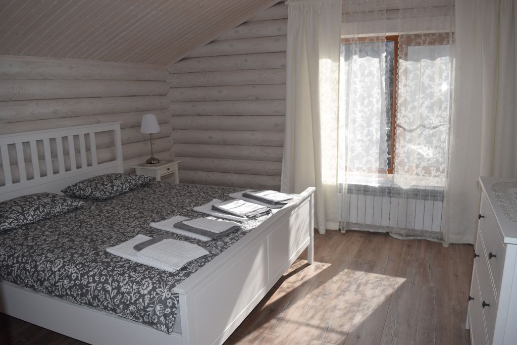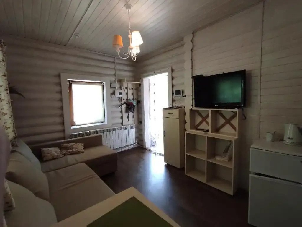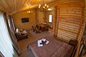 большая двуспальная кровать, раскладной диван, большой стол с лавками, телевизор, санузел.
