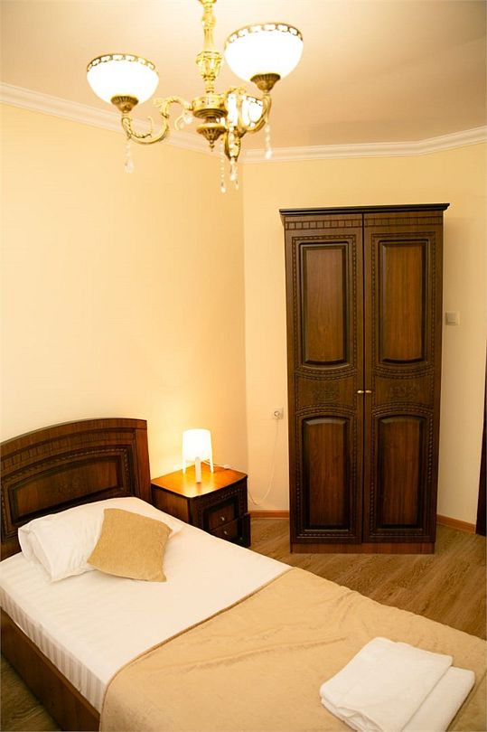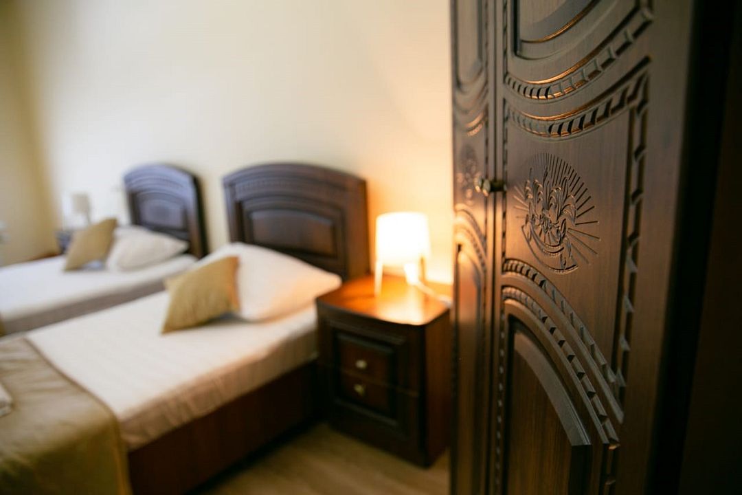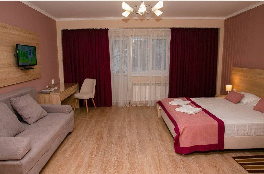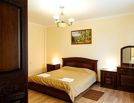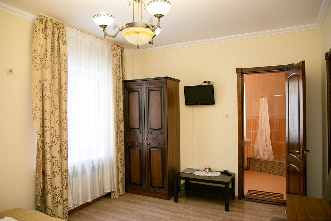 Трехкомнатный номер, который подойдет для большой семьи и компании друзей. Рассчитан на размещение до 6 человек. Мебель и интерьер выдержаны в едином для отеля классическом стиле. Уютный номер настроит на отдых, а вид из окна на горы умиротворит и заставит забыть о любых проблемах.Услуги и удобства