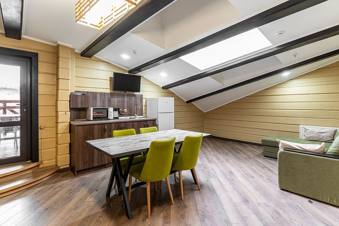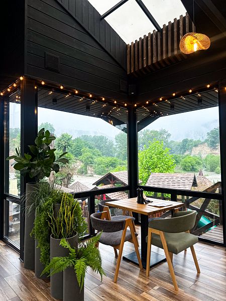 Вас ждут экологически чистые деревянные терема, находящиеся вдали от загрязненного городского воздуха. Здесь, вместо шума города, вы сможете наслаждаться шелестом молодых листьев и шумом горной реки. Помимо этого, вас ожидают национальные блюда, приготовленные с любовью и из свежих, домашних ингредиентов.
