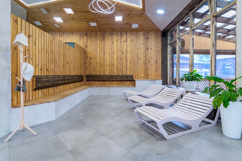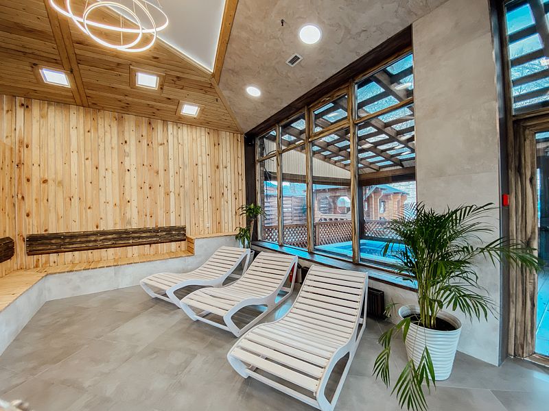 Здесь есть небольшая сауна с бассейном и комнатой отдыха рассчитанной на 15-20 человек.