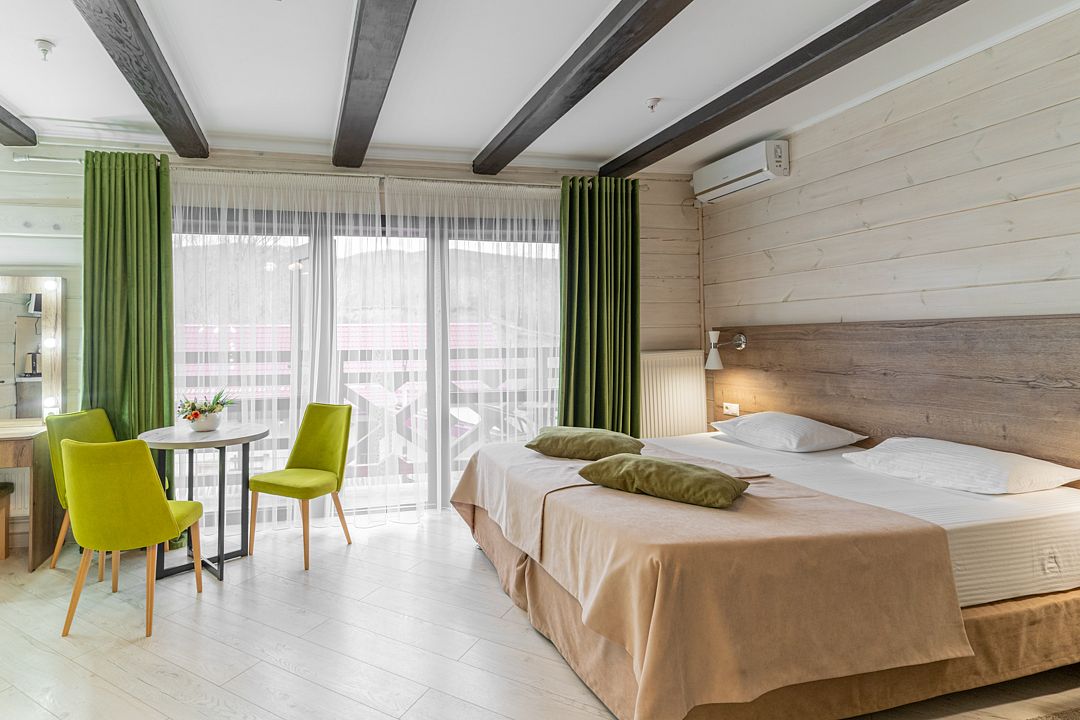 Проведите Новогодний корпоратив в Адыгее с проживанием. В Отеле Терем у реки 55 номеров с различными категориями с беседками и мангальными площадками. В нашем Отеле может разместиться как малый бизнес с 20 сотрудниками, так и средний или большой с 130 коллегами.