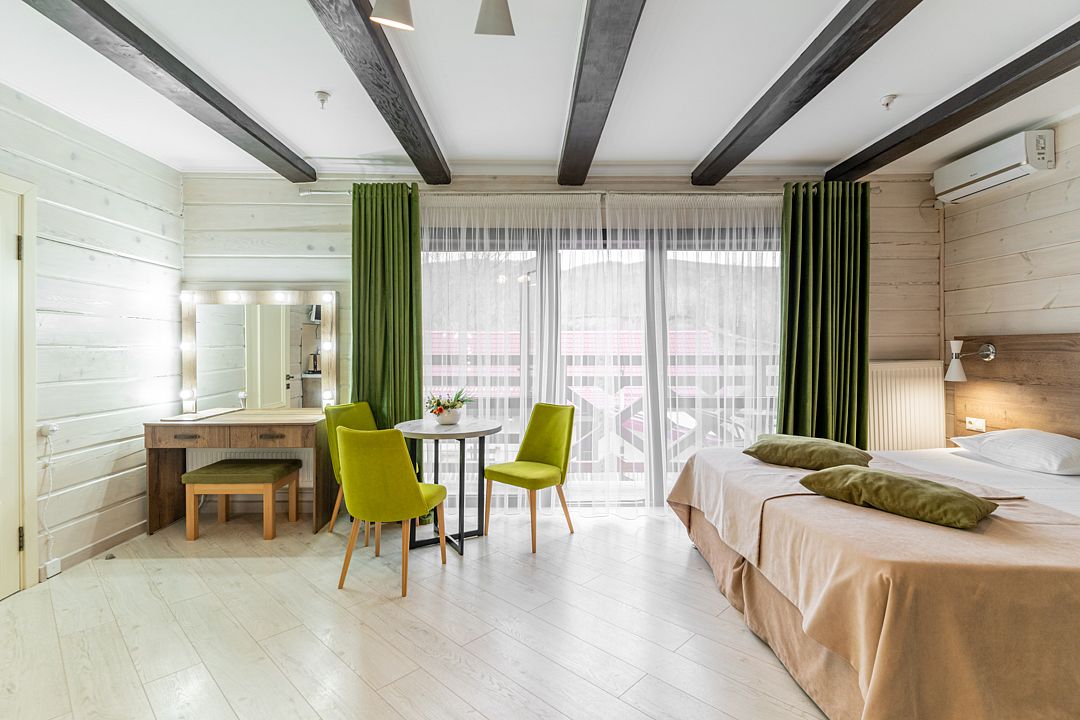 В Отеле Терем у реки созданы все условия, чтобы отлично отдохнуть и продуктивно провести корпоратив. Живописная территория с теплым бассейном над открытым небом, СПА с хаммамом и финской сауной, русская баня на дровах, невероятные достопримечательности Адыгеи для активных мероприятий, соревнований и квестов на свежем воздухе, банкетный зал, ресторан и конференц-залы для презентаций и подведения итогов года.