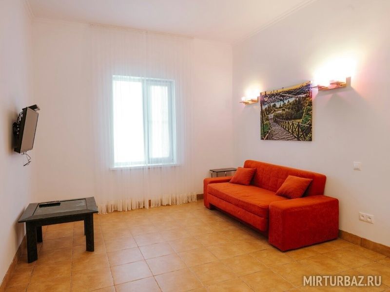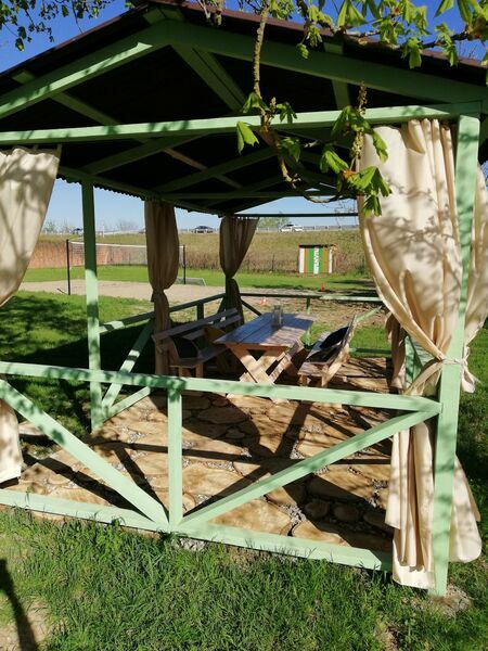 В коттедже две спальни, кухня, гостиная, санузел, коттедж оснащен всем необходимым для проживания, холодильник, варочная панель, микроволновая печь, эл. чайник, сплит система, холл, горячая вода, посуда, из коттеджа есть выход на террасу полностью укомплектованной садовой мебелью, мангальная зона.
