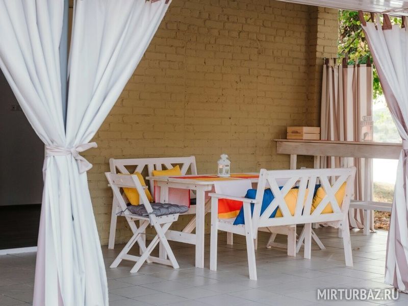 Здесь вы можете насладится спокойствием и непринужденностью, база располагает террасами и коттеджами со всем необходимым оснащением, есть лаунж зоны и детская площадка.
