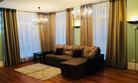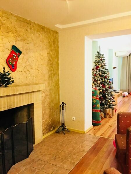 В коттедже банкетный зал на 15 человек, три спальни, кухня, каминная зона, два санузла, из коттеджа есть выход на террасу полностью укомплектованной садовой мебелью, мангальная зона.
