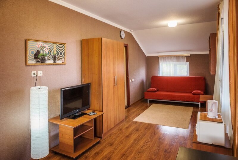 Тихое и комфортное место, хорошо подходит для большой компании (совмещенные номера балконом, довольно большие беседки с мангалом, а так же большим местом в столовой как внутри так и на улице, баня)