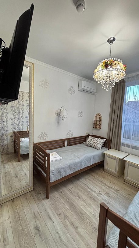 Номер выполнен в индивидуальном дизайне и оснащен всем необходимым для комфортного проживания, включая удобные кровати, современную мебель и все необходимые удобства.
