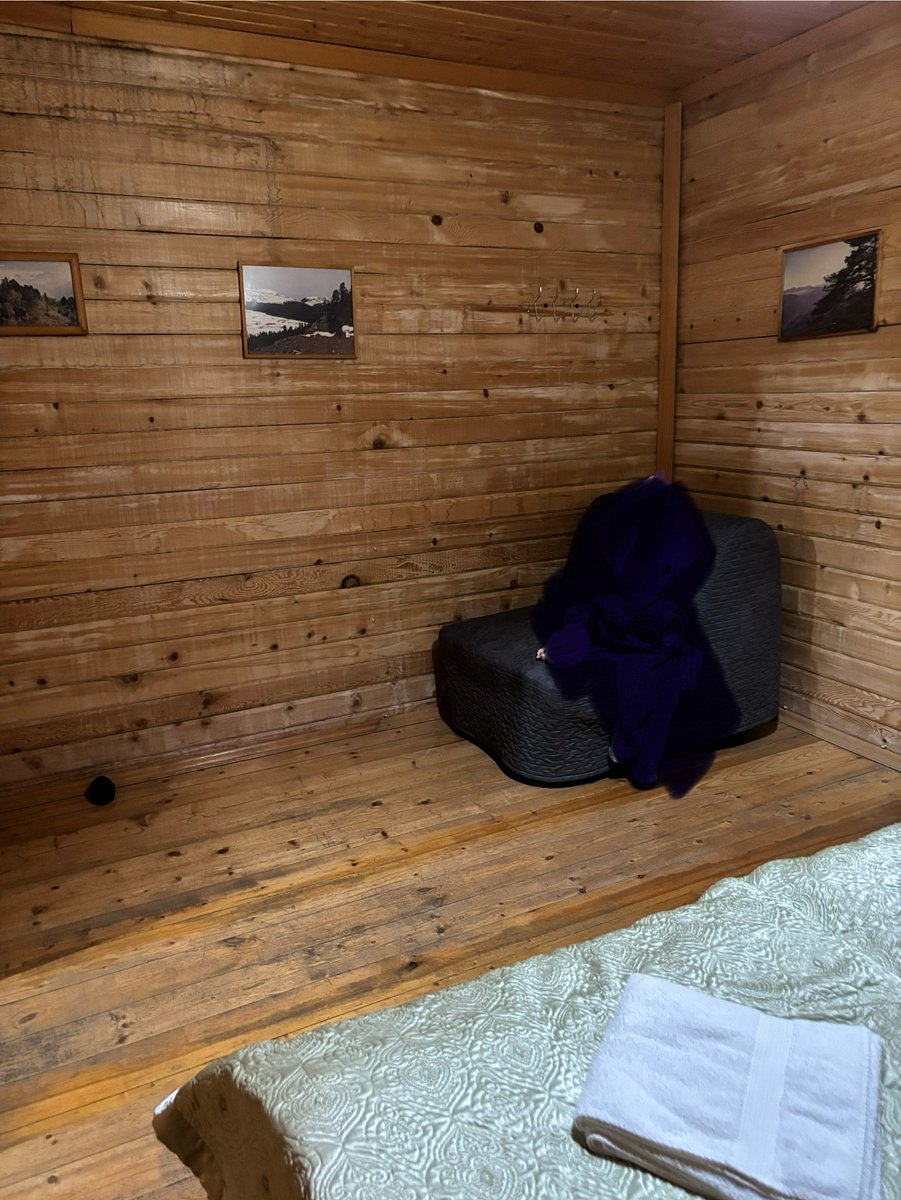 Можно заказать просторную баню за отдельную плату или маленькую баньку с холодным или теплым чаном.
